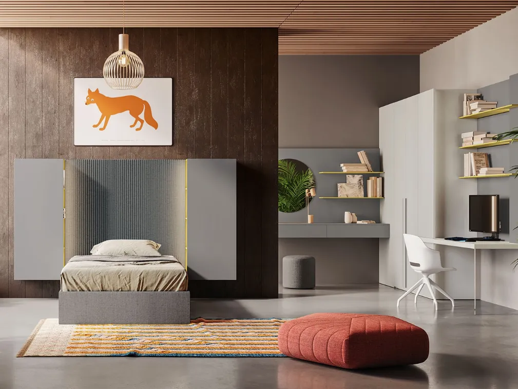 Camerette componibili per ragazzi: scopri il modello in laccato opaco Start T11 di Clever per stanzette moderne.