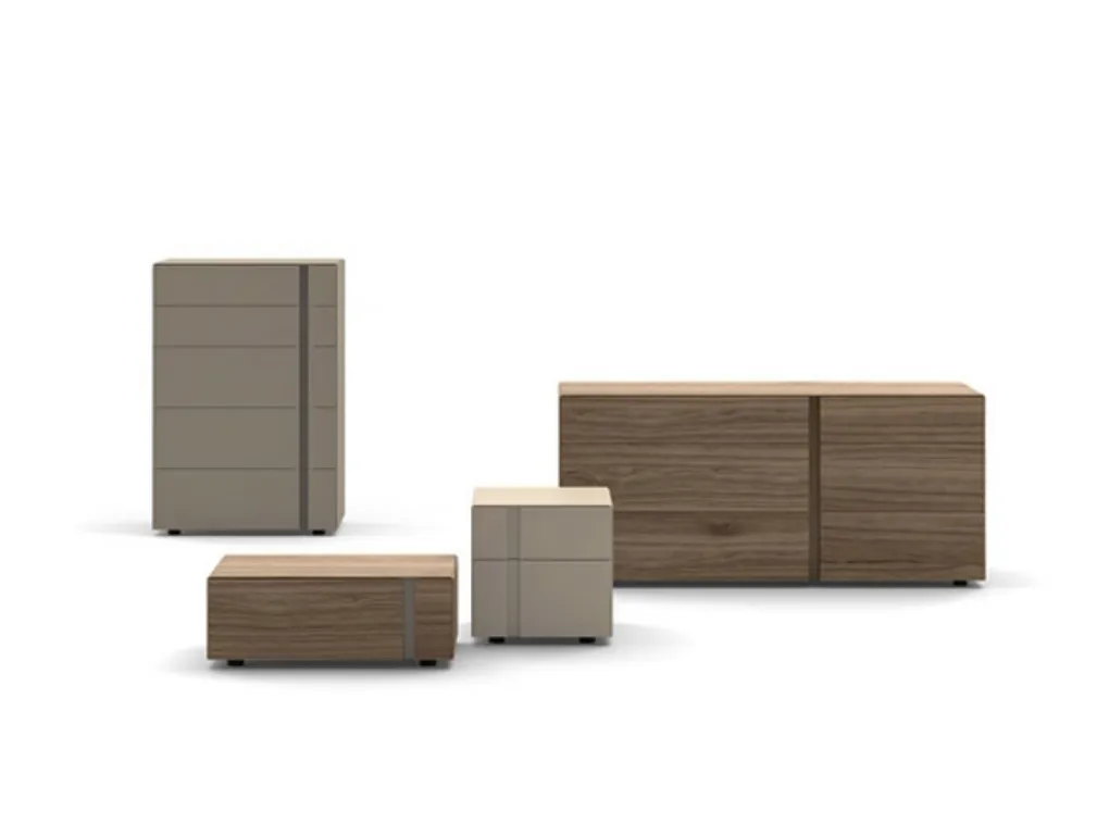 Vuoi arredare la zona notte con Comodini e cassettiere di Sangiacomo? Ecco qui il modello Abaco Gruppo Notte in legno per spazi moderni.