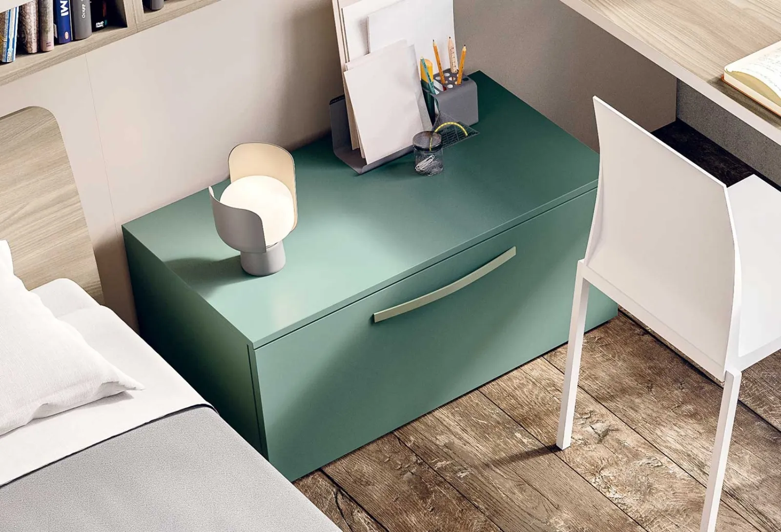 Una ricca gamma di cassettiere Clever: i comodini moderni in laccato opaco, come Box terra alto Comodino, sono tra le soluzioni più esclusive.