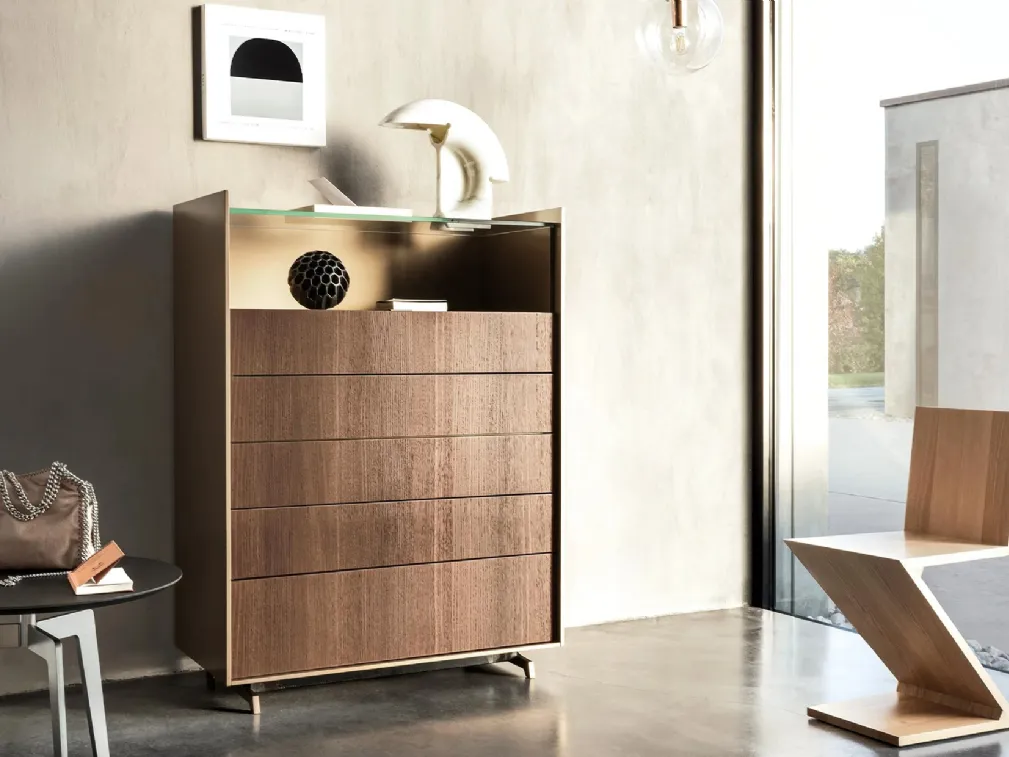 Vuoi ammobiliare la camera da letto con Comodini e mobili con cassetti di Sangiacomo? Eccoti il modello Cabaret Glass Cassettiera in legno per spazi design.