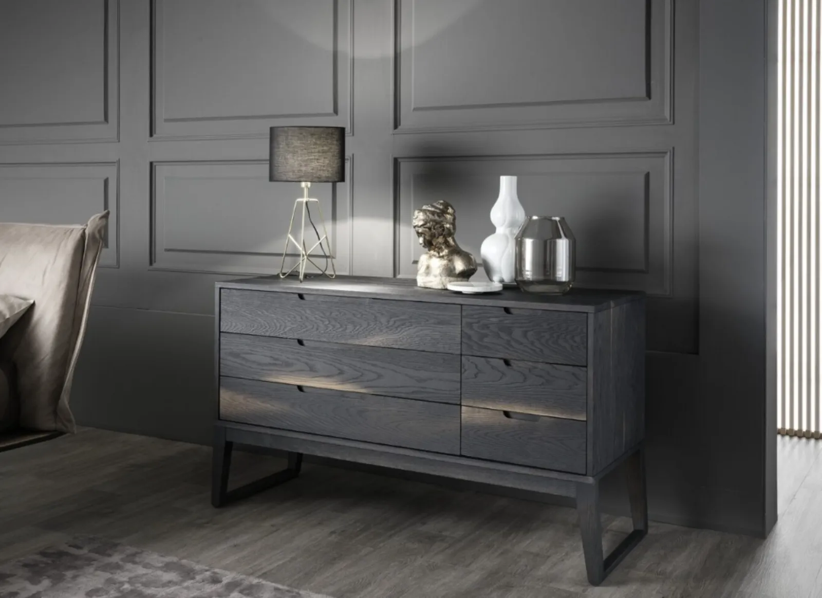 Le proposte in legno della firma Alta Corte, leader nella produzione di armadi e comodini, permettono di ricreare accostamenti su misura oppure avere caratteristiche in voluto contrasto con i restanti pezzi di arredo. I Comodini sono alcuni dei mobili e oggetti accessori imprescindibili in ogni zona del riposo, in quanto permettono di completare gli spazi ottimizzando ogni angolo. Comò Clover di Alta Corte: si tratta di un tipo di elemento per contenere eclettico e capace di garantirti funzionalità e un'ottima resa estetica in spazi moderni. Grazie a questi oggetti di arredo abbiamo la possibilità ordinare piccole cose utili o esporre accessori. Ottieni informazioni sulla nostra linea di gruppi notte dei migliori brand per sistemare l'ambiente con uno stile unico.