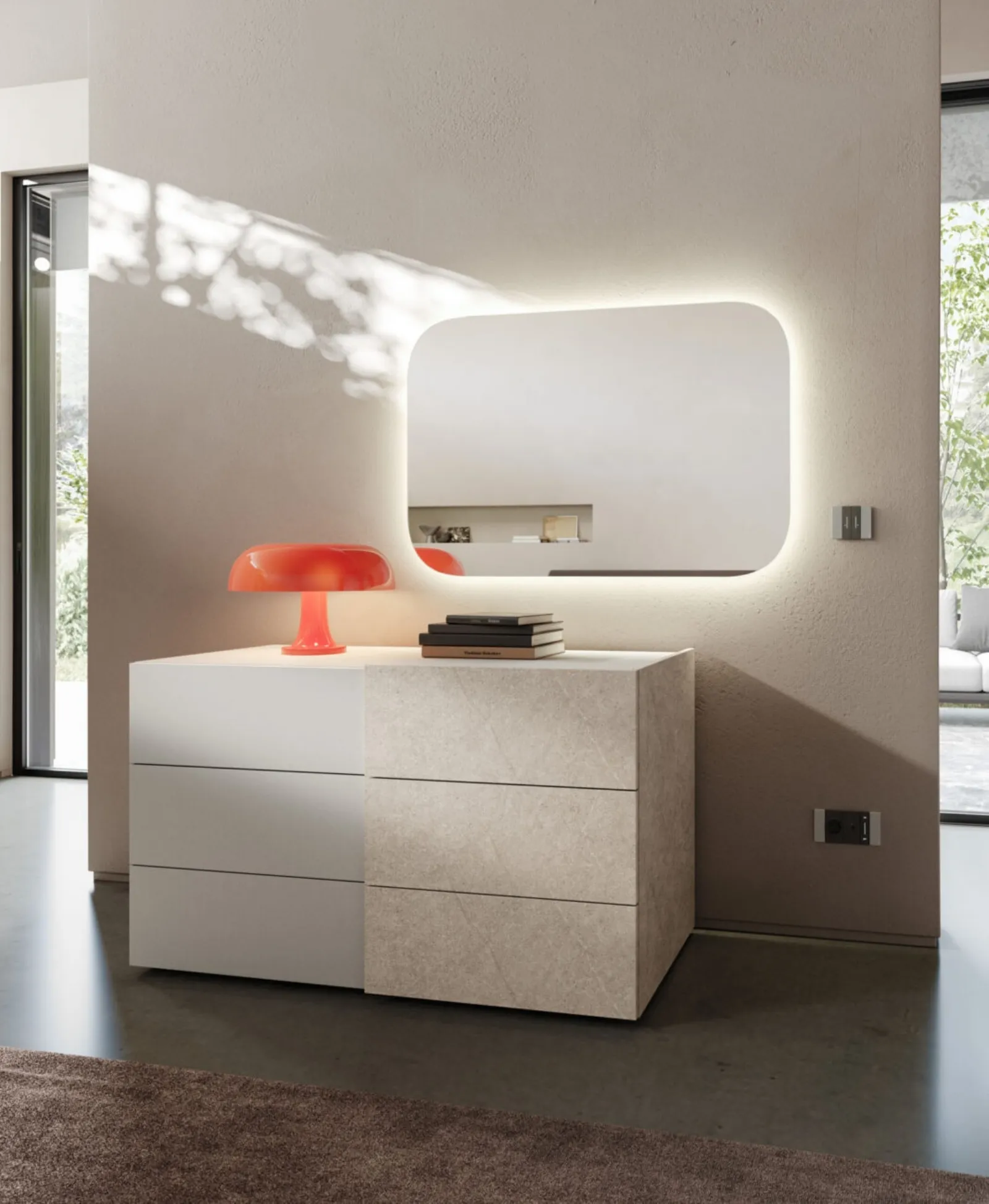 Una ricca gamma di mobili con cassetti Orme: i comodini moderni in melaminico, come Comò Double, sono tra le proposte più esclusive.