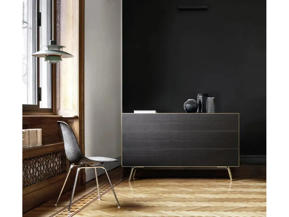 Vuoi ammobiliare la zona notte con Comodini e cassettiere di Sangiacomo? Ecco qui il modello Domino Mono Comò in legno per spazi moderni.