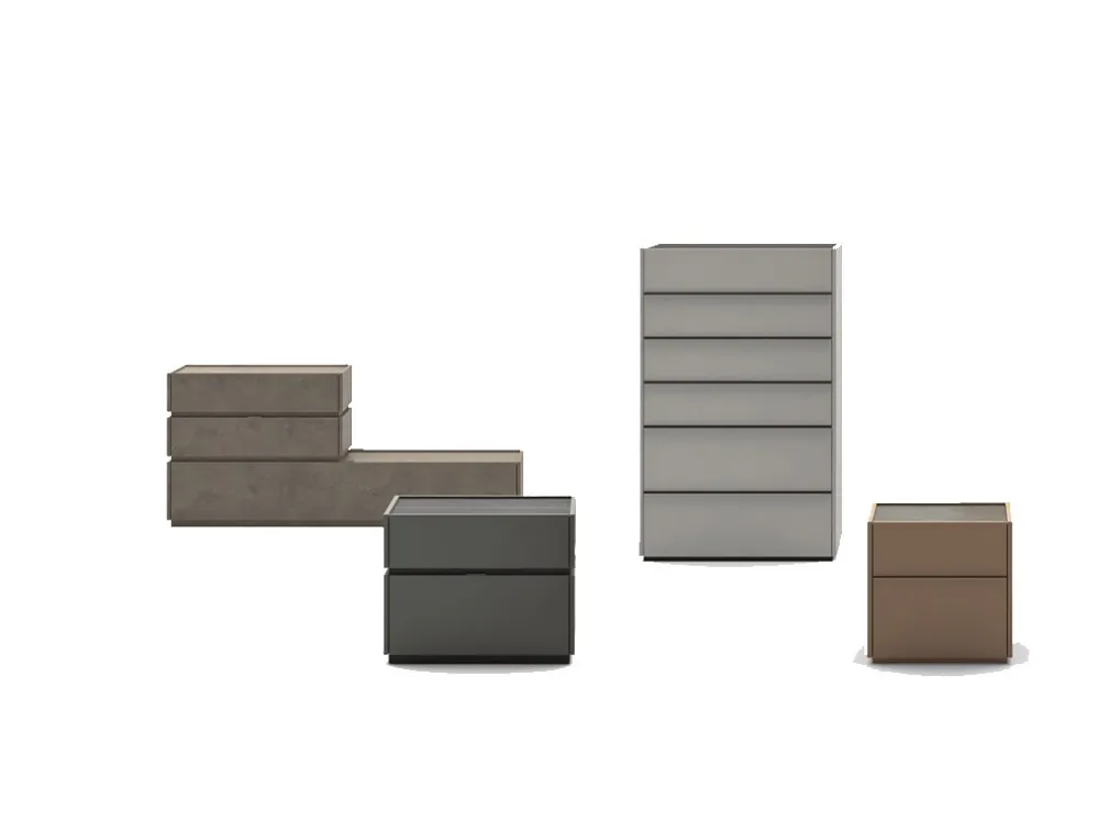 Una ricca gamma di cassettiere Sangiacomo: i comodini moderni in melaminico, come Filo Gruppo Notte, sono tra le proposte più belle.
