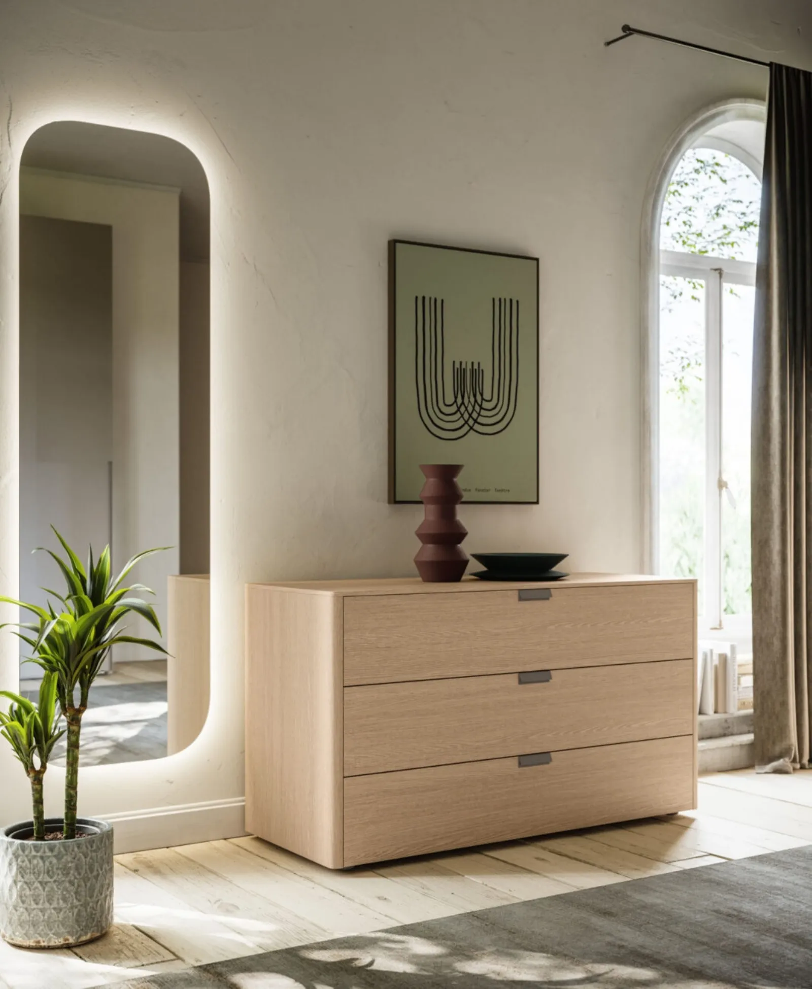 Vuoi allestire la zona notte con Comodini e cassettiere di Orme? Ti presentiamo il modello Gruppo Notte Chiara in melaminico per spazi moderni.