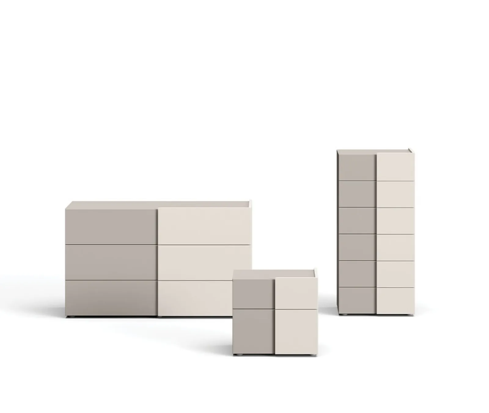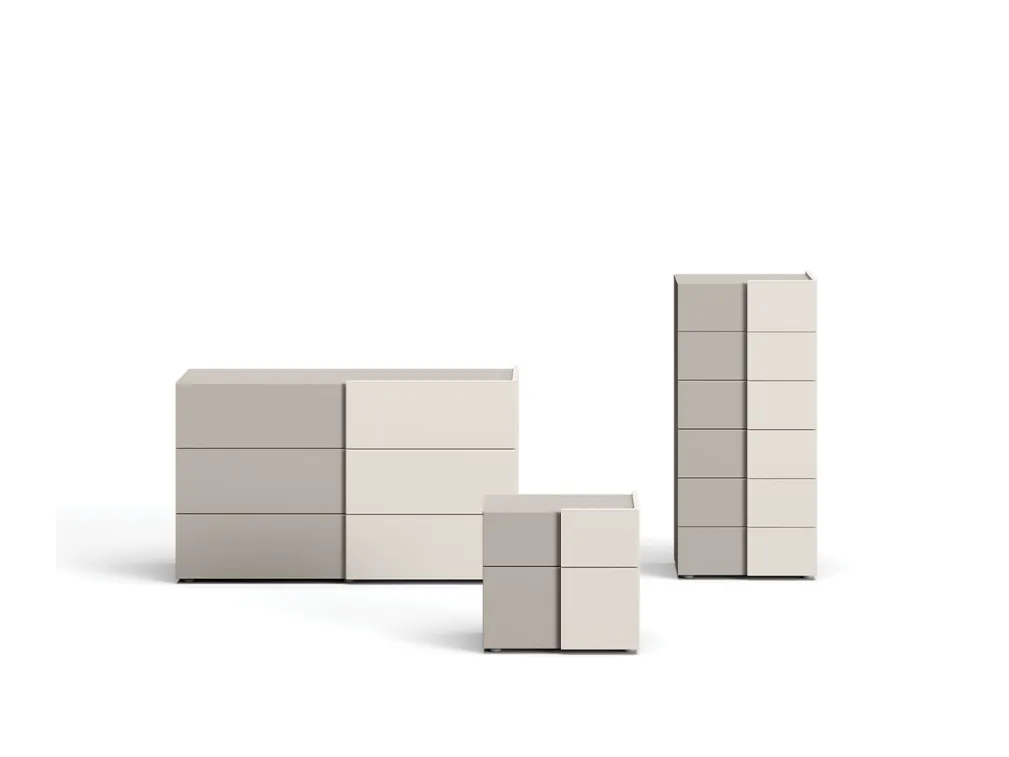 Una ricca gamma di cassettiere Orme: i comodini moderni in melaminico, come Gruppo Notte Double, sono tra le proposte più belle.