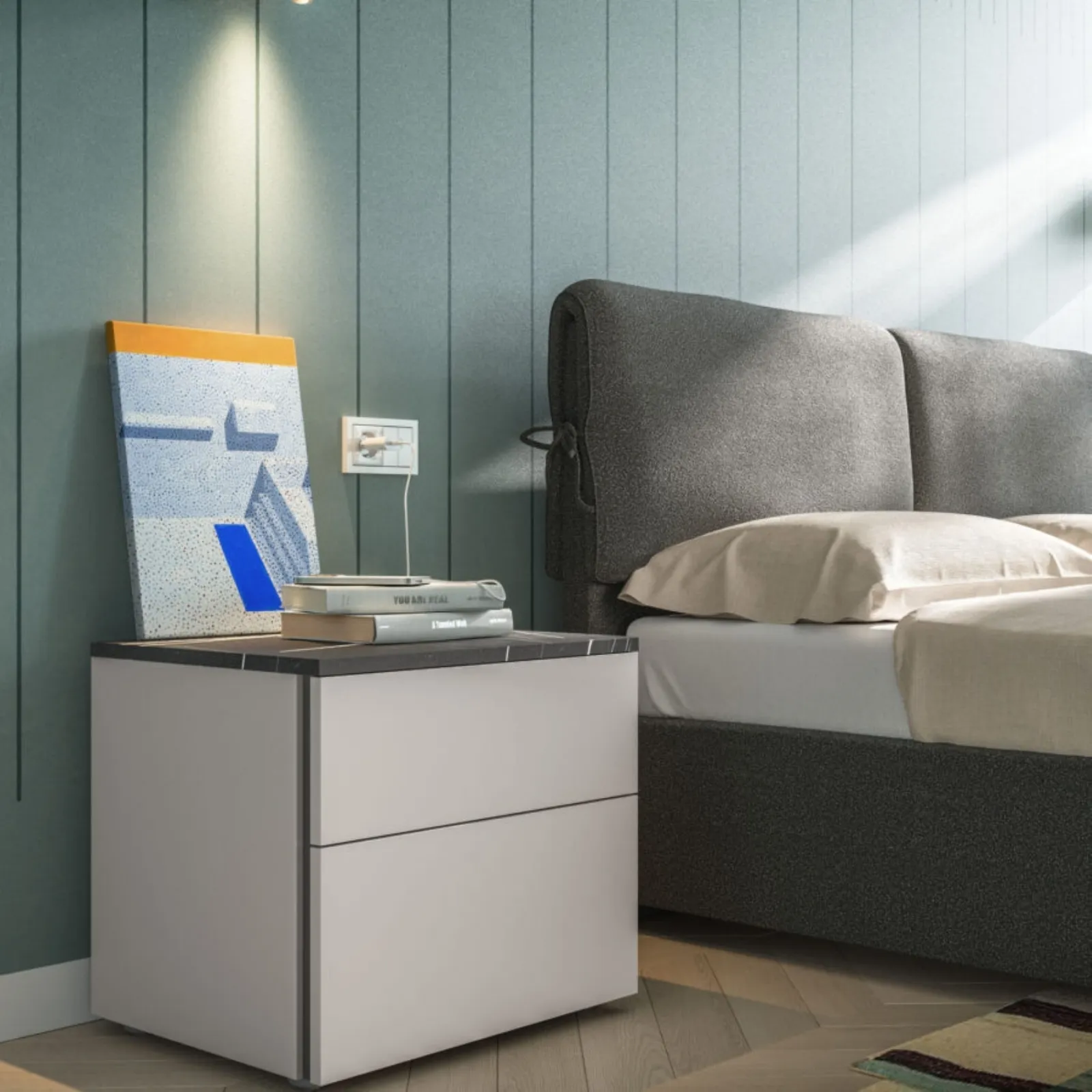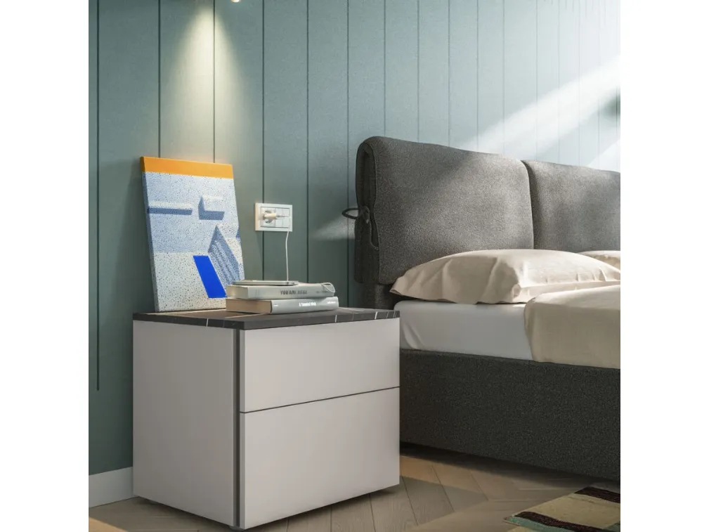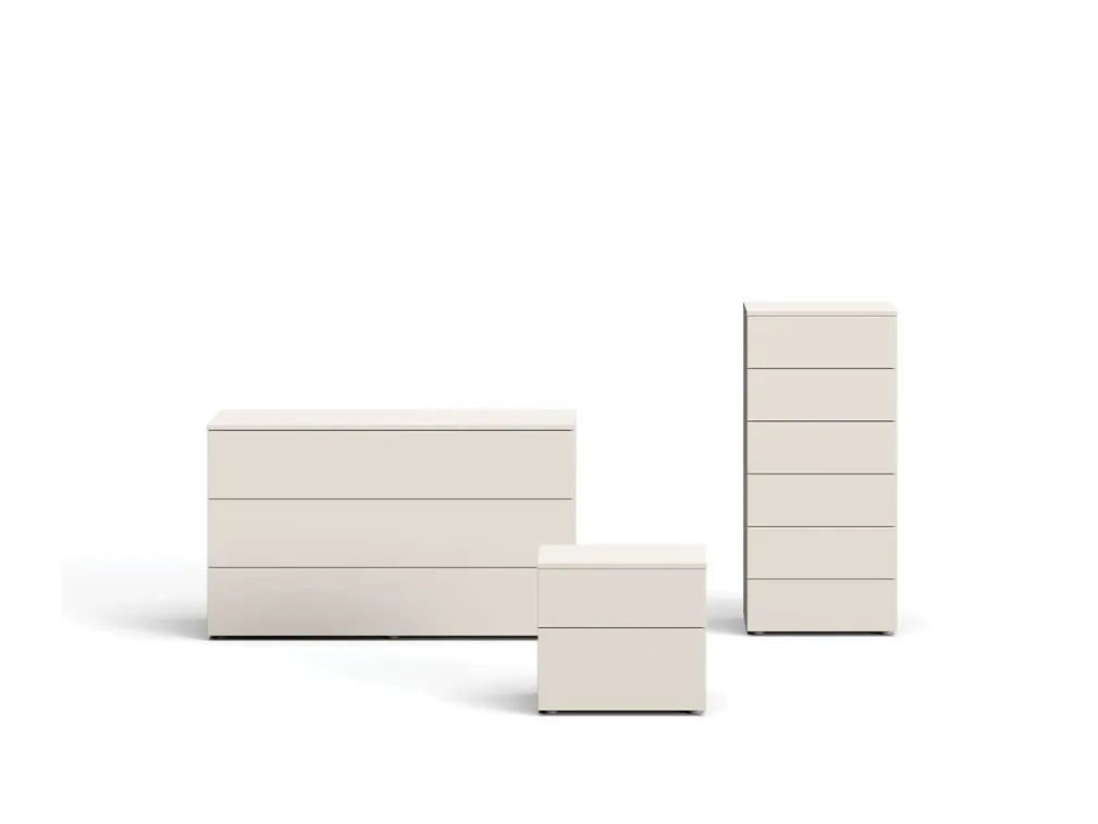 Vuoi progettare la camera da letto con Comodini e cassettiere di Orme? Ti presentiamo il modello Gruppo Notte Flow in melaminico per spazi moderni.