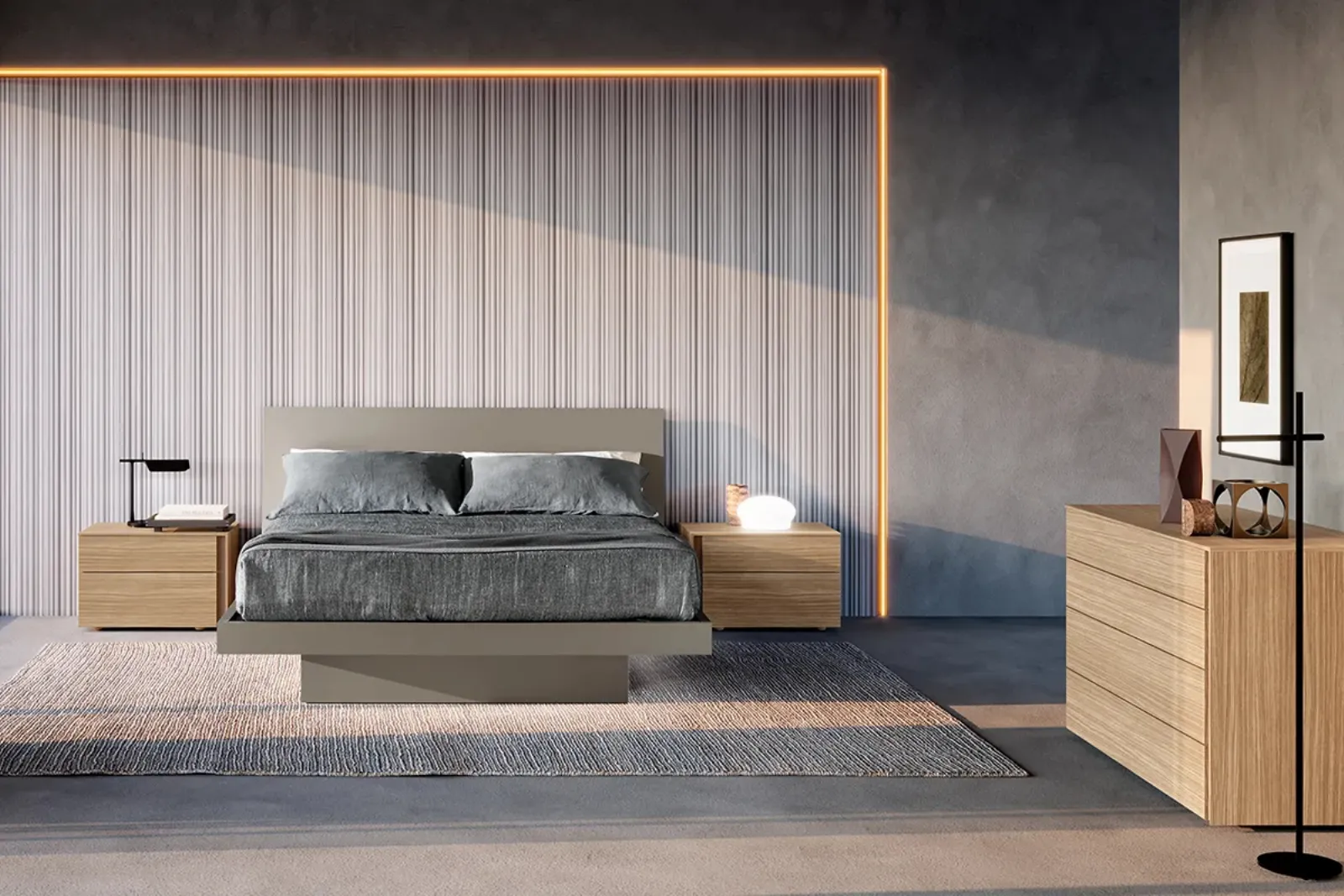 Valorizza i tuoi interni scegliendo composizioni di elementi abbinati oppure ricrea unici abbinamenti di stile e tonalità per merito del catalogo di mobili ed elementi accessori per la zona notte che proponiamo, come il modello in melaminico mostrato in foto, anche realizzabili su misura. Con i nostri gruppi notte moderni del brand Adok, specialista dell’Arredamento Casa per la zona notte, potrai ricreare la camera che hai sempre desiderato. Gruppo Notte Groove di Adok: contattaci e ottieni informazioni sulle nostre soluzioni arredative e arreda la camera come l'avevi sognata. La zona notte contiene anche i Comodini: contenitori strategici che danno modo di ordinare piccole cose e contare su superfici di appoggio per diversi usi.