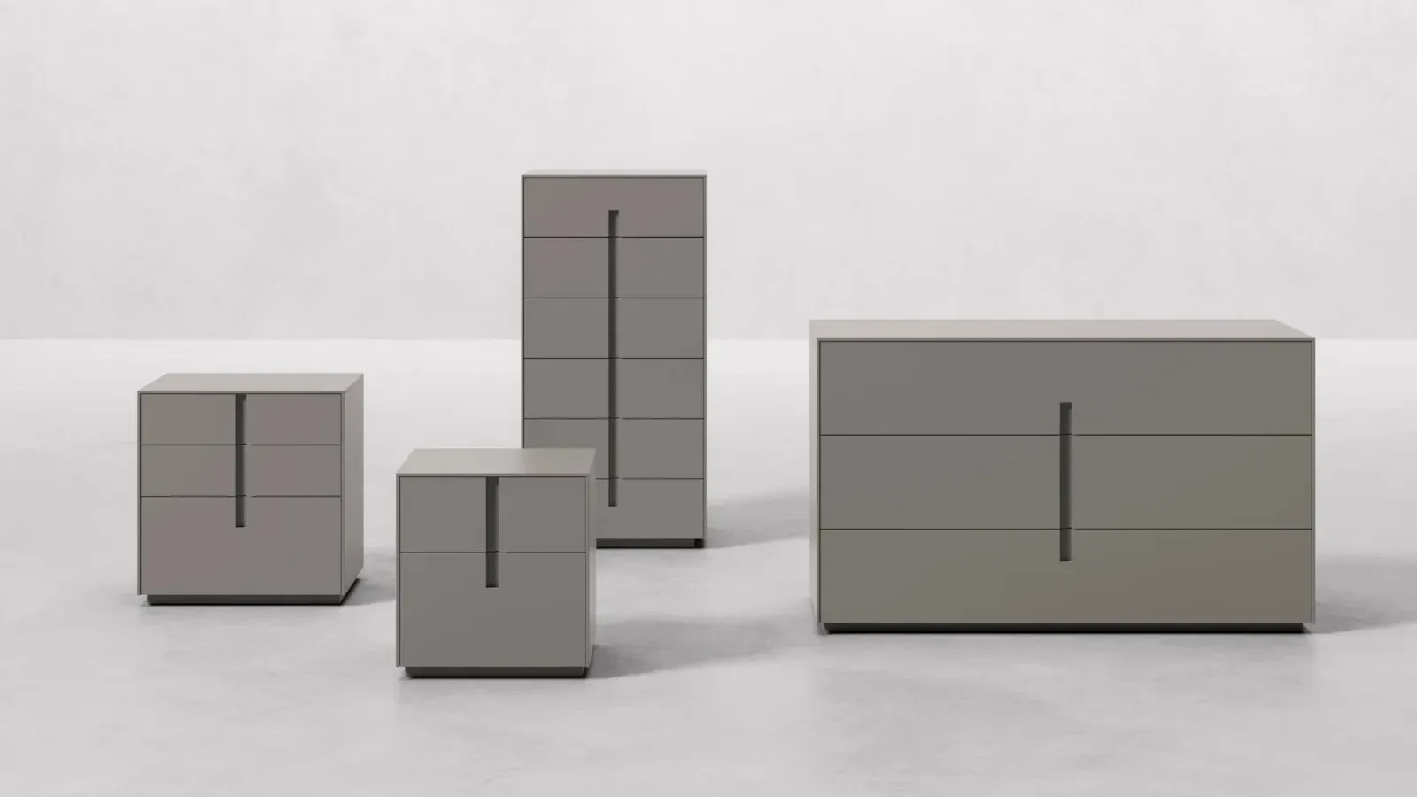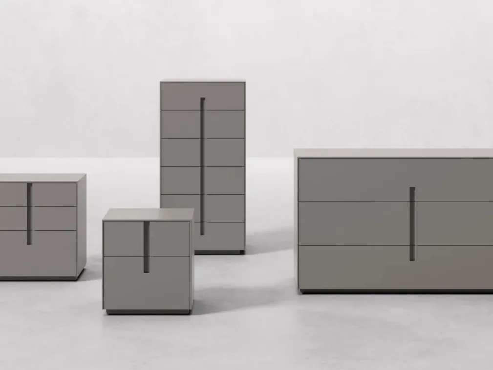 Vuoi progettare la camera da letto con Comodini e cassettiere di Orme? Ecco qui il modello Gruppo Notte Ilo in laccato opaco per spazi moderni.