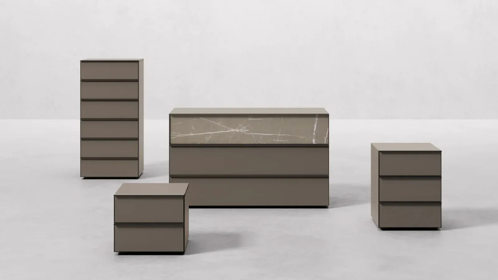 Vuoi ammobiliare la camera da letto con Comodini e cassettiere di Orme? Eccoti il modello Gruppo Notte Noto in laccato opaco per spazi moderni.