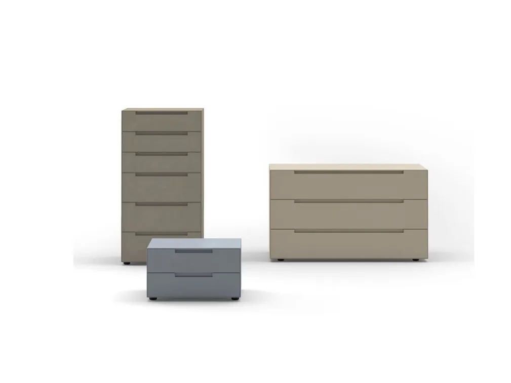 Vuoi progettare la zona notte con Comodini e cassettiere di Sangiacomo? Ti presentiamo il modello Gruppo Notte Iseo in laccato opaco per spazi moderni.
