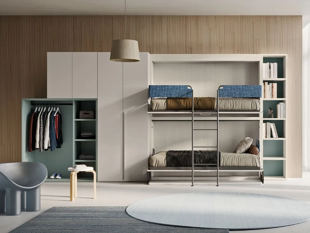 Con i Letti a scomparsa salvaspazio in laccato opaco di Clever, tra cui questo modello di design, avrai nella tua camera da letto un arredo bello e assai funzionale. La giusta tipologia di letto deve seguire il tuo gusto personale e una precisa idea di stile, l'importante è che si adatti alle misure e funzioni dell'ambiente. In una camera da letto di piccola metratura trova spazio il Letto a castello a scomparsa Hiro Up di Clever, progettato per garantire il sonno più profondo e l'ottimale supporto ad ognuno. Nel nostro showroom potrai visionare in prima persona le diverse soluzioni in laccato opaco di Clever, tra cui scoprirai anche modelli su misura trasformabili di tendenza. La camera da letto è l'ambiente più intimo di casa, destinato al sonno quotidiano, perciò gli arredamenti devono sempre creare un'ambientazione distensiva. I prodotti costruiti in laccato opaco dal brand regalano alla tua camera da letto un tocco di eleganza e charme, per uno spazio votato al massimo agio.