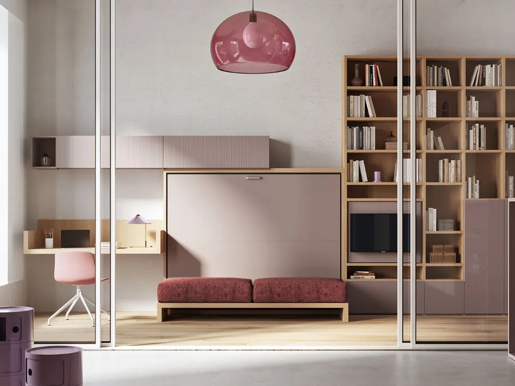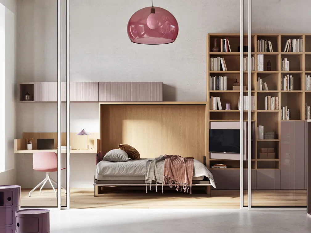 Con i Letti a scomparsa salvaspazio del brand Clever, tra cui questo pratico modello, farete della camera da letto un locale ammobiliato con stile. La camera da letto è lo spazio di casa che più mostra il gusto di chi la usa, locale in assoluto dedicato al relax, alla distensione e alla propria privacy. Visitare il nostro negozio significa toccare con mano le più belle composizioni in laccato opaco del rinomato brand, tra cui anche quelle ideali per locali piccoli. Nella camera da letto i Letti a scomparsa sono il centro dell’arredamento: con la biancheria e i cuscini, diventano un’isola di relax che ti accolga a fine giornata. Tra i Letti a scomparsa in laccato opaco presenti in commercio, il modello mostrato in foto ti assicurerà il riposo migliore ogni notte e un completo benessere. I modelli salvaspazio su misura di Clever disponibili nel nostro punto vendita completano le doti pratiche della tua camera da letto unendo doti di funzionalità ed ergonomia.