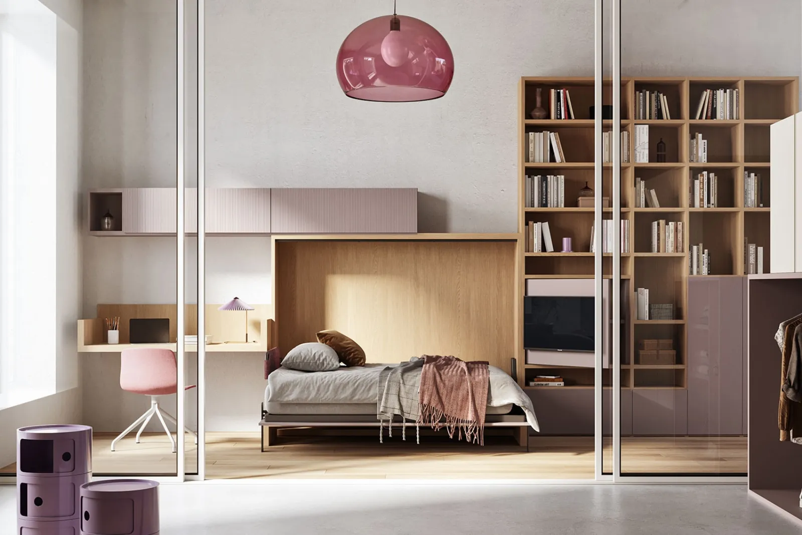 Cerchi soluzioni salvaspazio? Scopri i letti a scomparsa Clever come questo modello Nikai 01 in laccato opaco.