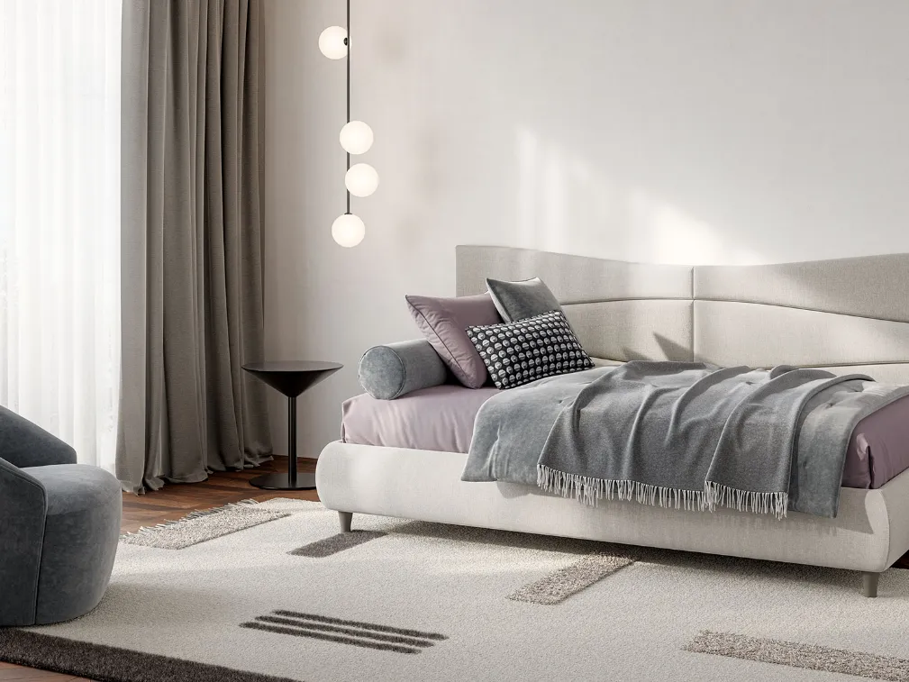 Se sei alla ricerca di letti singoli imbottiti, eccoti il modello Boiserie Flute in tessuto per completare la camera dei più piccoli.