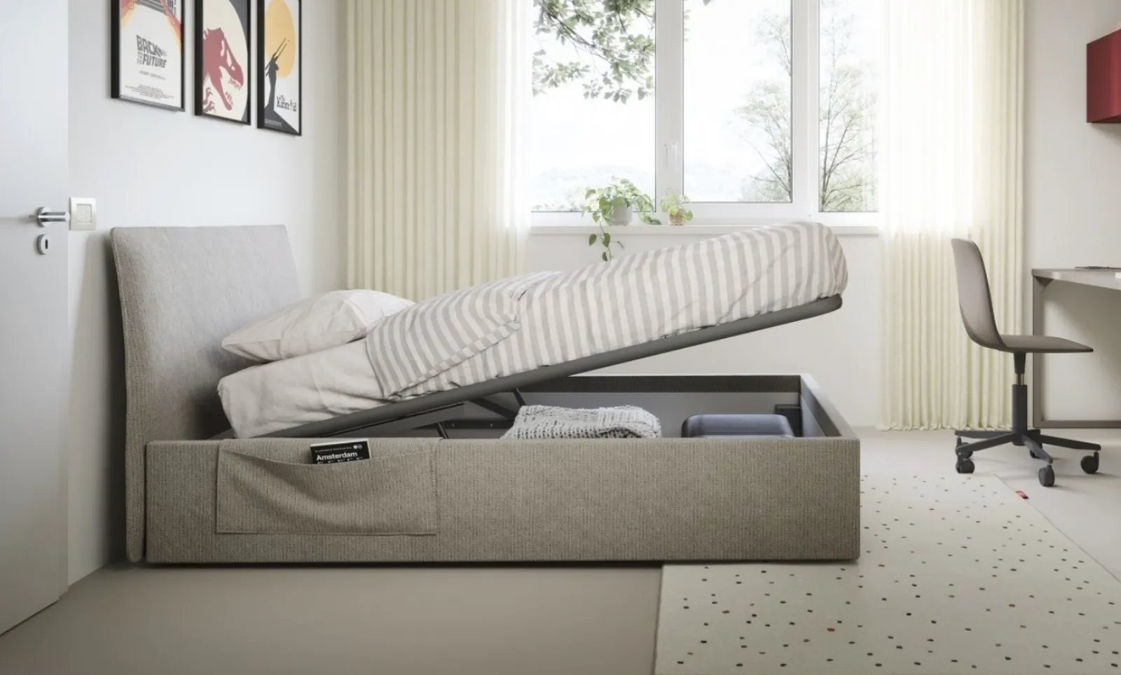 Scopri di più sul modello in tessuto nell'immagine: contattaci per qualsiasi specifica compilando il form qui sotto. La cameretta dei bimbi include ogni mobile per garantire un locale confortevole, in cui sono presenti i letti moderni come questo. Cerchi un letto singolo Nidi per completare la camera dei più piccoli? Eccoti il Letto singolo Flare di Nidi che appartiene alla nostra collezione di letti con contenitore della firma. Una proposta che osserva le norme di sicurezza necessarie per arredare l'ambiente dei piccoli.