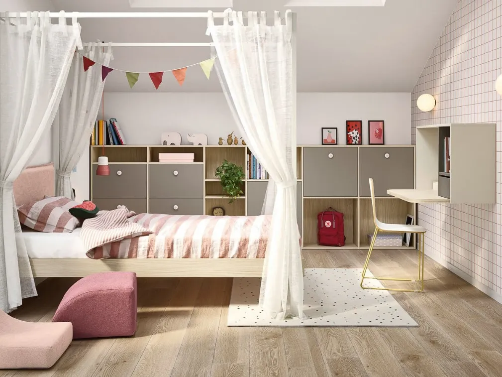 I Letti singoli imbottiti per la camera dei più piccoli disponibili in negozio risolvono qualunque problema di spazio e funzionalità, assicurando al contempo uno stile unico. Ottieni informazioni sul Letto singolo a baldacchino Kap di Nidi in foto: si adatta a ricreare perfettamente un ambiente ideale per i bambini, bello e ben organizzato, ideale per i tuoi bambini. Un ricco catalogo di letti moderni in melaminico ti aspetta: il brand Nidi propone svariate versioni di letto, che rispondono sempre alle richieste dei bimbi. Materiali pregiati e pitture ecologiche connotano le proposte dell'azienda: se la stanza ha misure non generose, sono diversificate le soluzioni disponibili, sempre in grado di abbinare ergonomia e sicurezza.