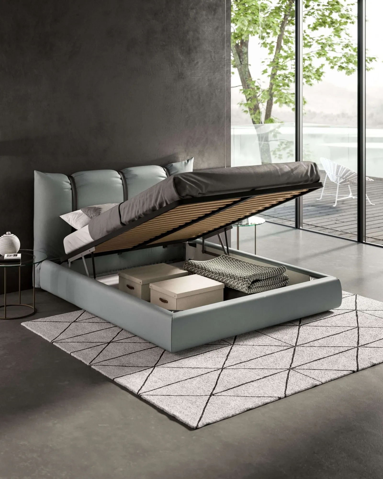 Clicca e scopri i Letti con contenitore di Ozzio! Il modello Confit in pelle ti attende nelle versioni matrimoniali.