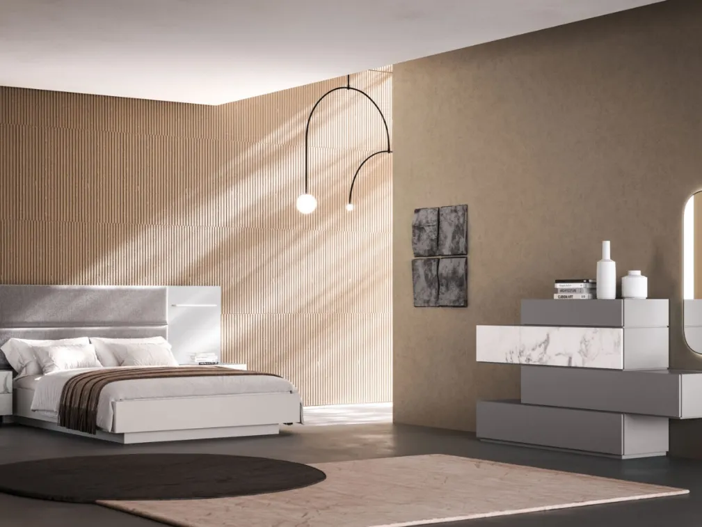 Il letto Giako Night 10 in tessuto, tra i modelli imbottiti matrimoniali moderni di Orme, è perfetto per garantirti il riposo migliore.