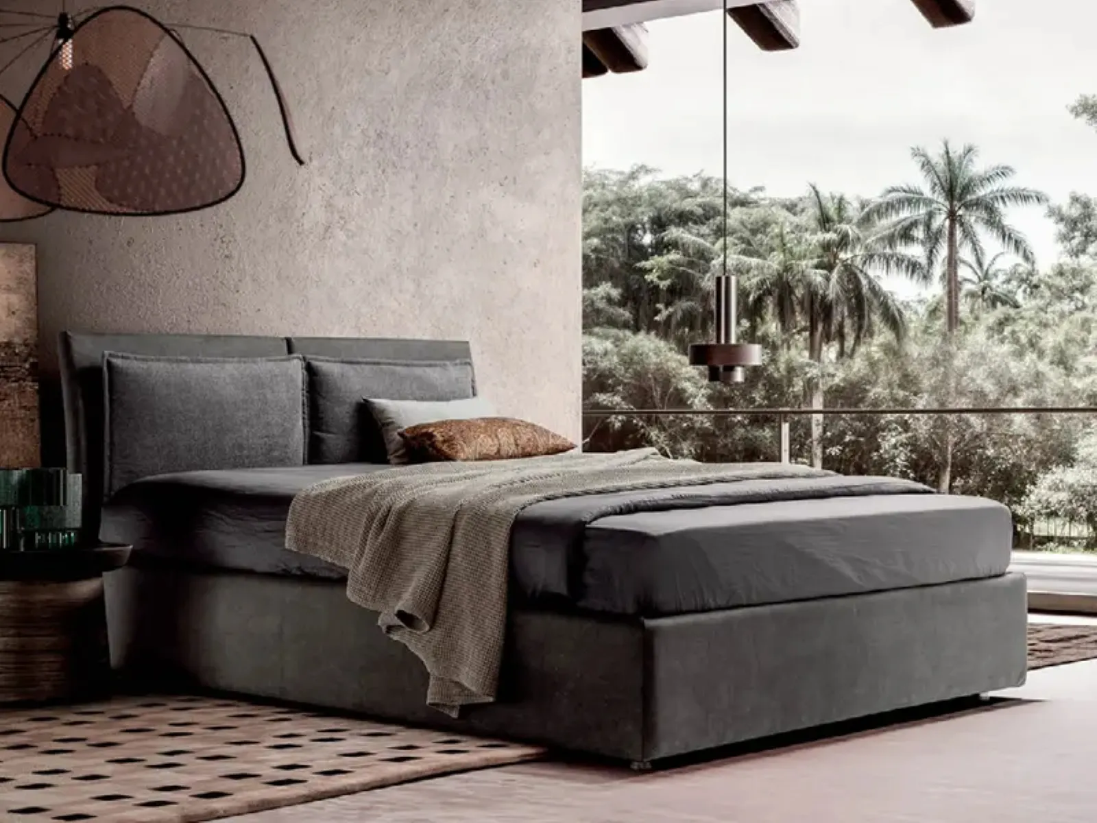Il letto Holiday in pelle, tra i modelli con contenitore matrimoniali moderni di Rigosalotti, è pensato per garantirti il sonno più profondo.