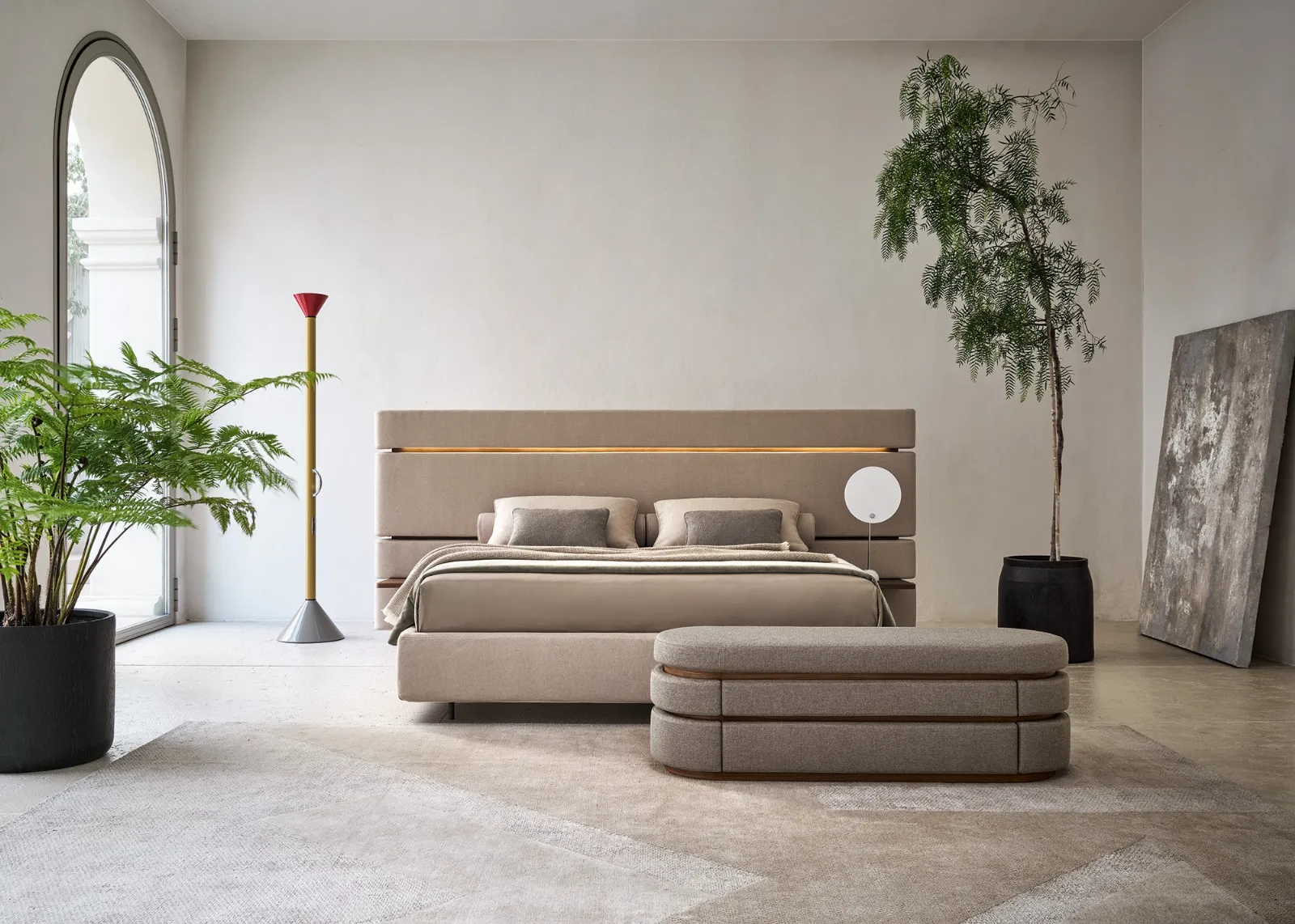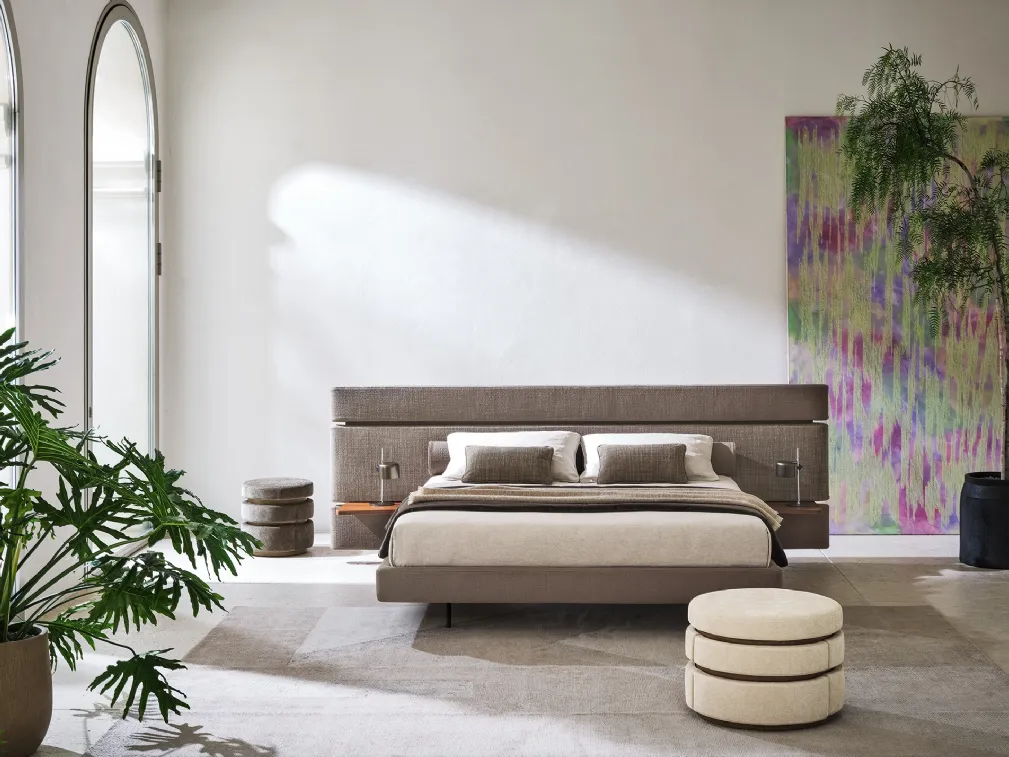 Se vuoi letti matrimoniali con contenitore, ecco qui il modello Infinito in tessuto per completare la camera da letto.