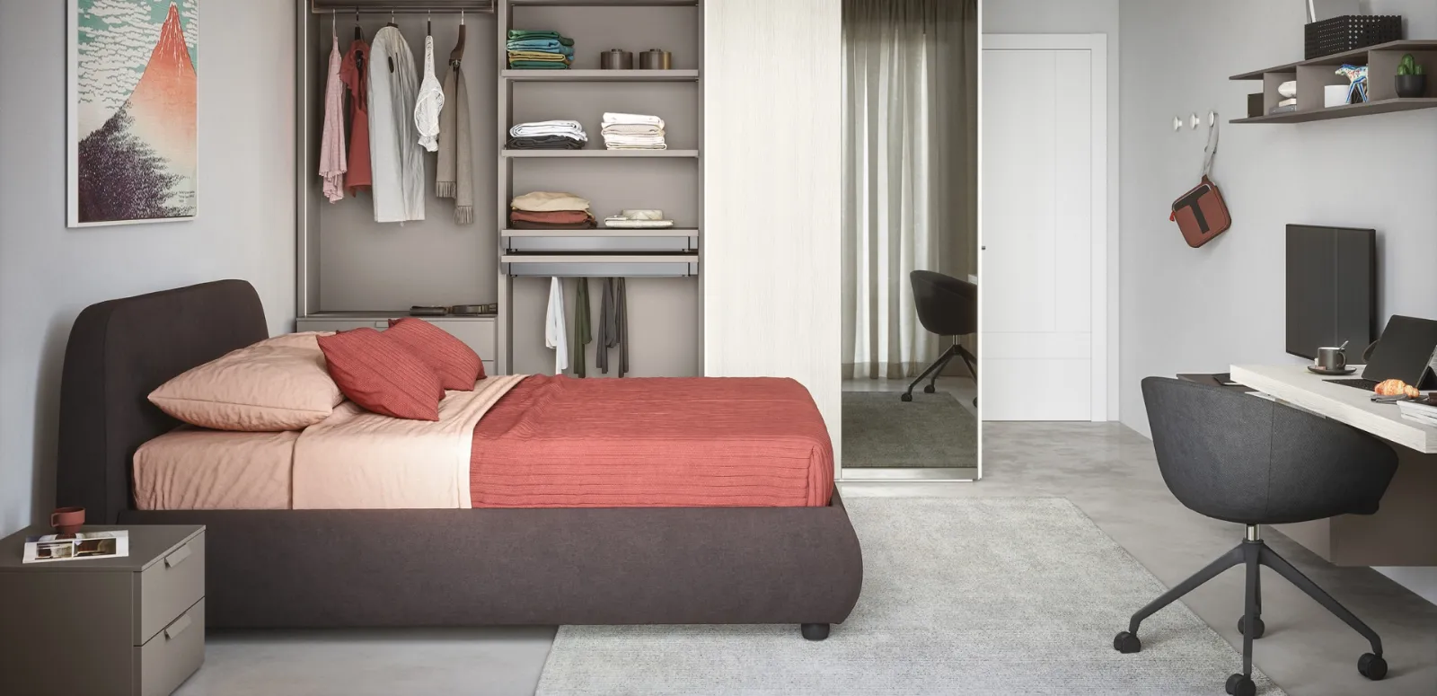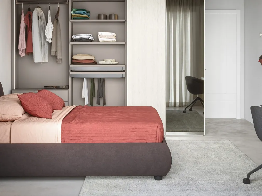 Se sei alla ricerca di letti matrimoniali imbottiti, eccoti il modello Kora in tessuto per valorizzare la camera da letto.