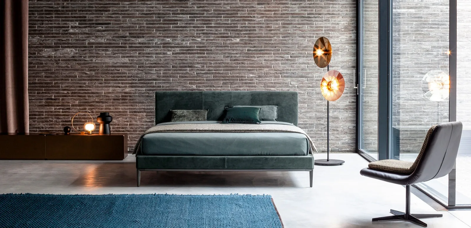 Il letto Max in tessuto, tra i modelli imbottiti matrimoniali moderni di Twils, è ideale per garantirti il sonno più profondo.