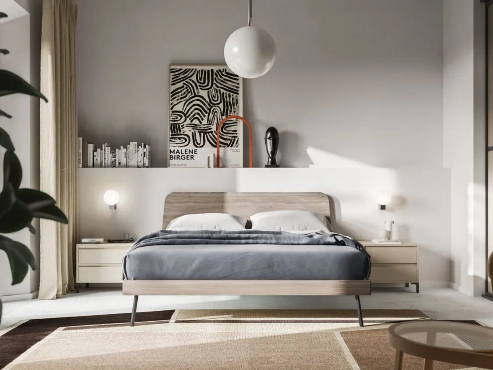 Se desideri letti matrimoniali con testiera, eccoti il modello Arca in melaminico per valorizzare la zona notte.