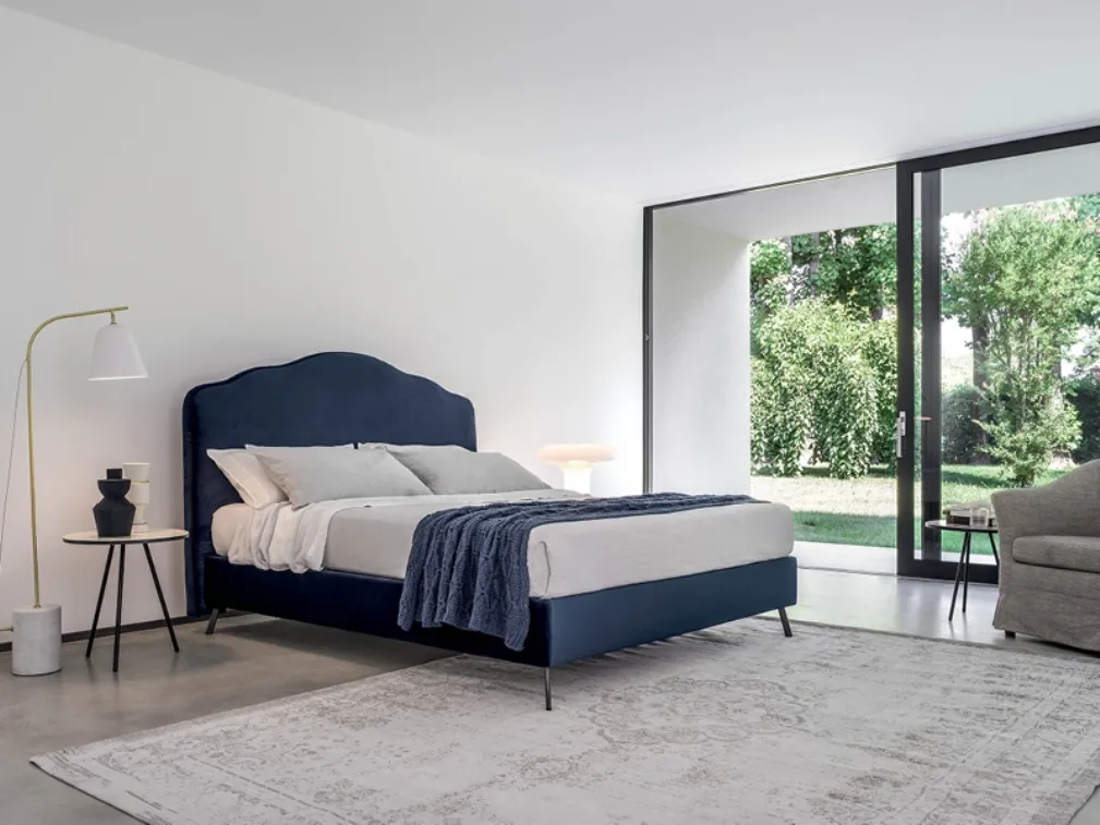 Vuoi progettare la camera da letto? Ecco qui il letto in tessuto Domino di Rigosalotti per spazi classici.