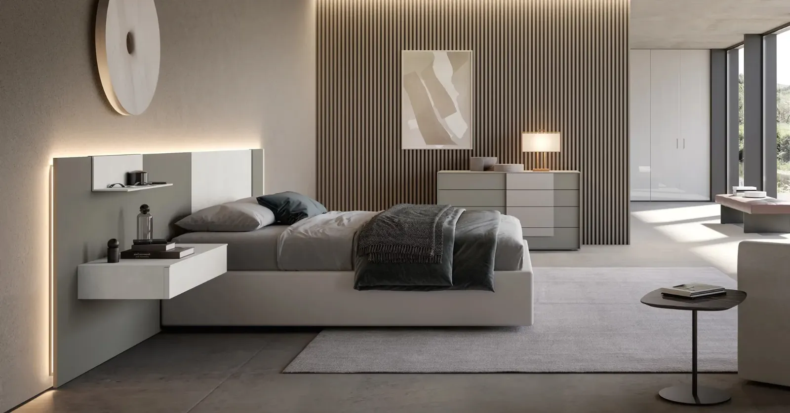 Vuoi progettare la zona notte? Ecco qui il letto in laccato opaco Side di Adok per spazi moderni.