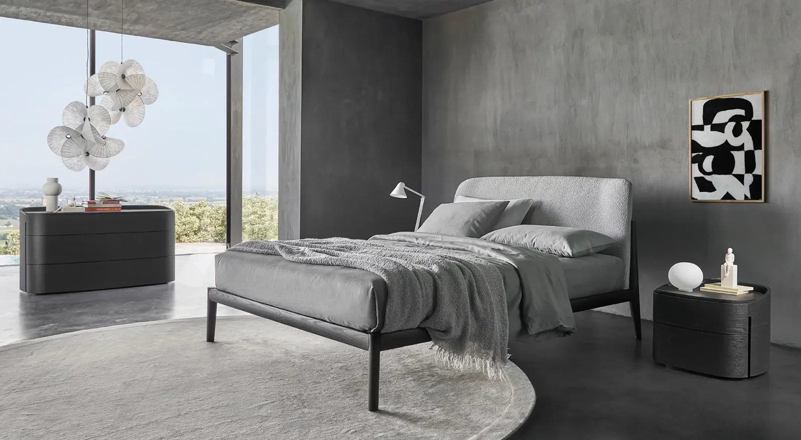 Vuoi ridefinire la camera da letto? Eccoti il letto in tessuto Sissi di Sangiacomo per spazi design.