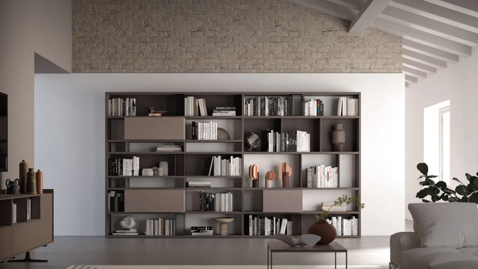 Materiali di pregio e linee decise: scopri la libreria Logico Day 32 di Orme tra le più originali Librerie moderne a muro.