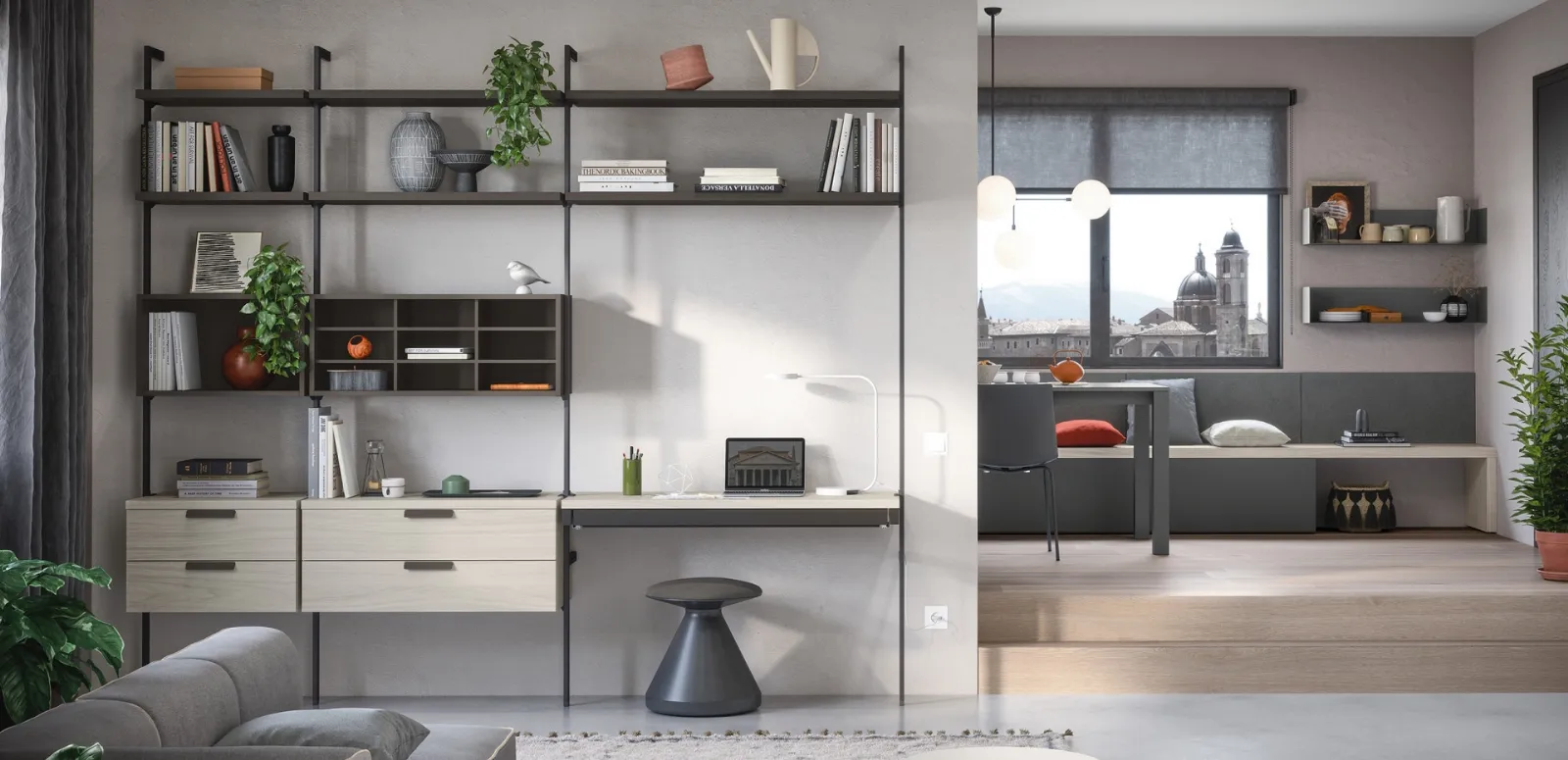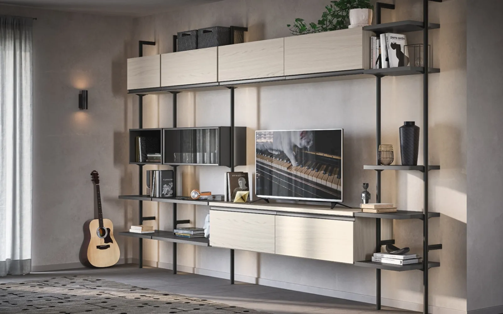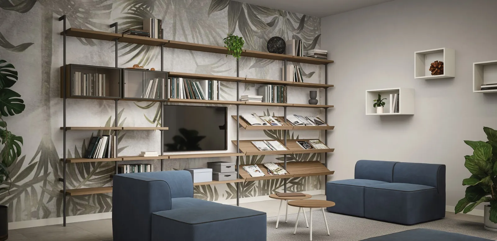 Clicca e scopri le Librerie componibili moderne! Il modello Libreria Uniko Cinquanta3 saprà completare un living pratico e operativo.