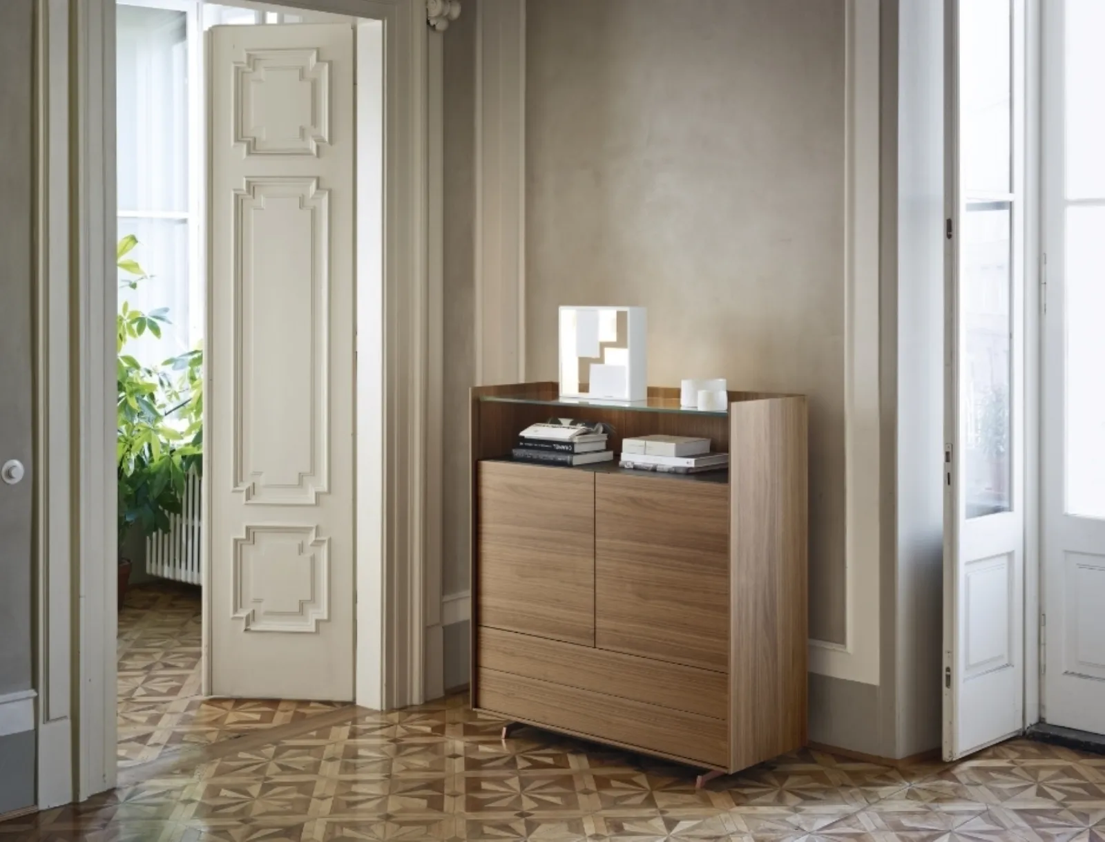 La scelta delle Madie per la zona giorno o per la zona pranzo ha a che fare con lo spazio libero, ma coinvolge anche lo stile dell'ambiente e le proprie necessità. Per un living o una zona pranzo che si rispetti, scegli questa Madia Cabaret 33C di Sangiacomo in legno tra le diverse composizioni moderne del brand. Le Madie servono per organizzare oggettistica assortita, libri e riviste, nonché a valorizzare il locale mixando ottimamente doti di funzionalità e stile. Considera che spesse volte ospiterai a casa familiari e amici per qualche ora in compagnia: è imprescindibile che lo spazio sia ben gestito e di grande valore estetico. Se vuoi una madia in legno da posizionare nella tua abitazione, non farti scappare l'opportunità di visionare in prima persona le nostre esclusive composizioni arredative.