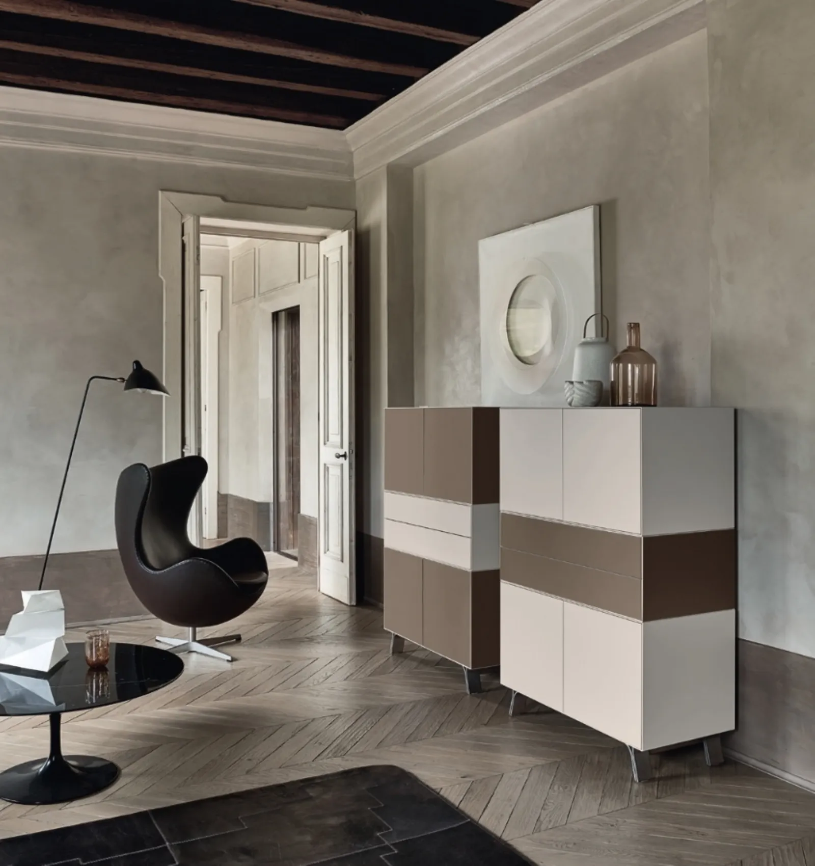 Arreda un soggiorno operativo e pratico con questa madia Domino IN 3 4N di Sangiacomo: scopri le più belle Madie in laccato opaco.