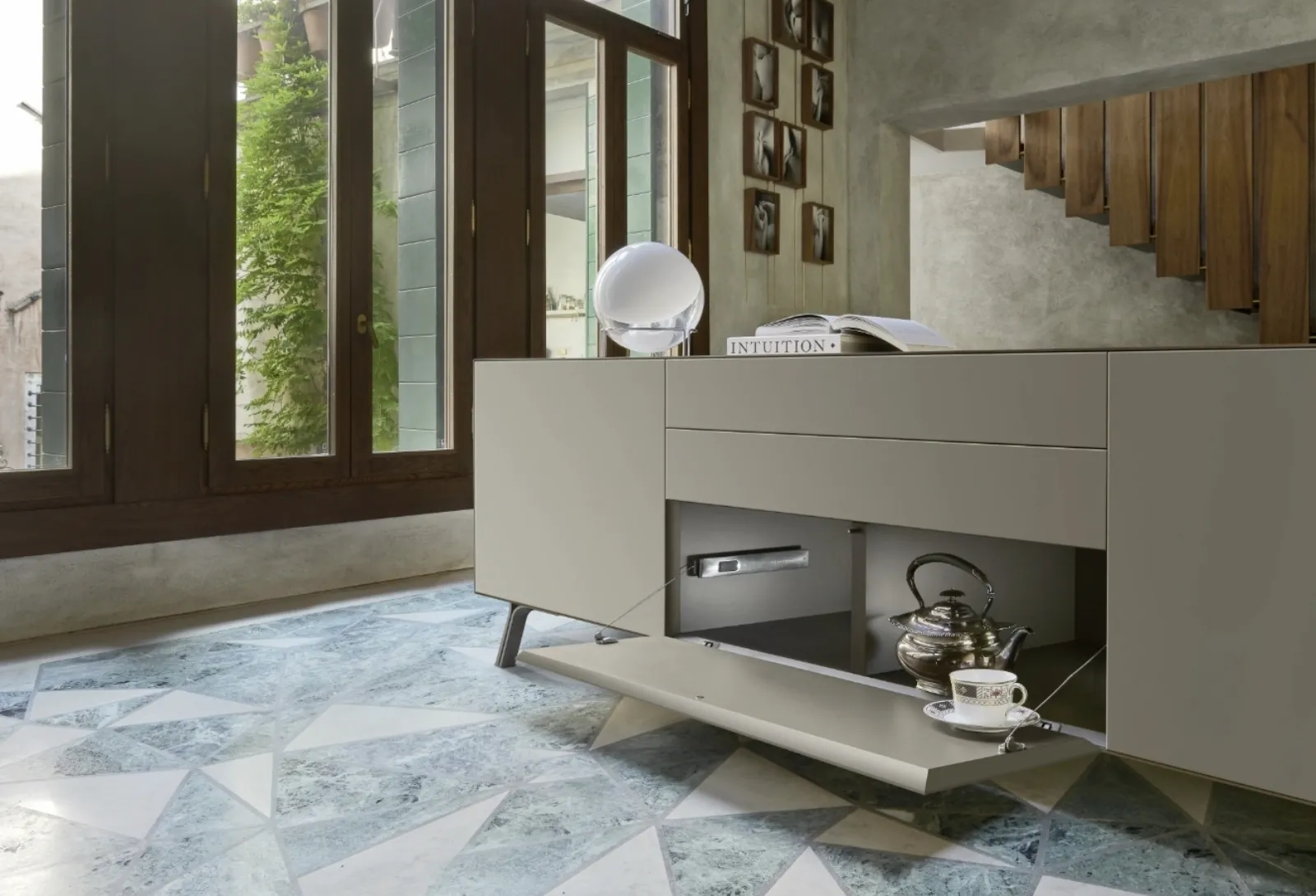Cerchi una nuova madia pratica e sofisticata dalle linee moderne? Ti offriamo il modello Domino Mono 01 di Sangiacomo, realizzato in laccato opaco.