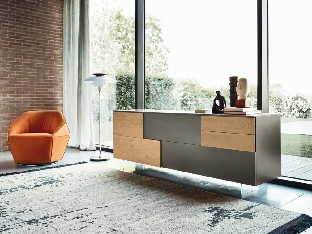 Arreda un soggiorno dinamico e operativo con questa madia Incontro 11 di Sangiacomo: scopri le più esclusive Madie in laccato opaco.