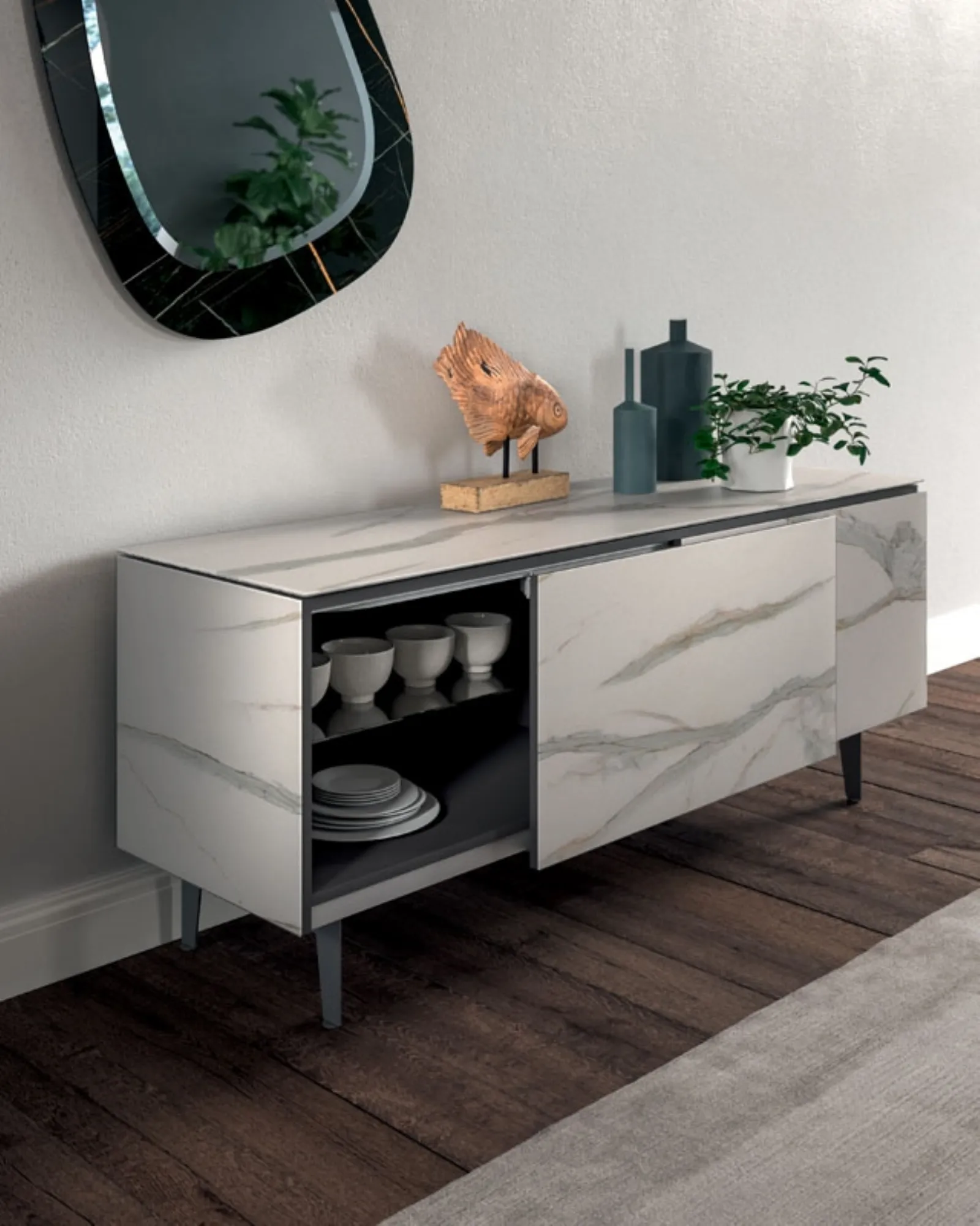 Cerchi una nuova madia bella e funzionale dalle linee moderne? Ecco a te il modello Plana di Ozzio, realizzato in vetro.