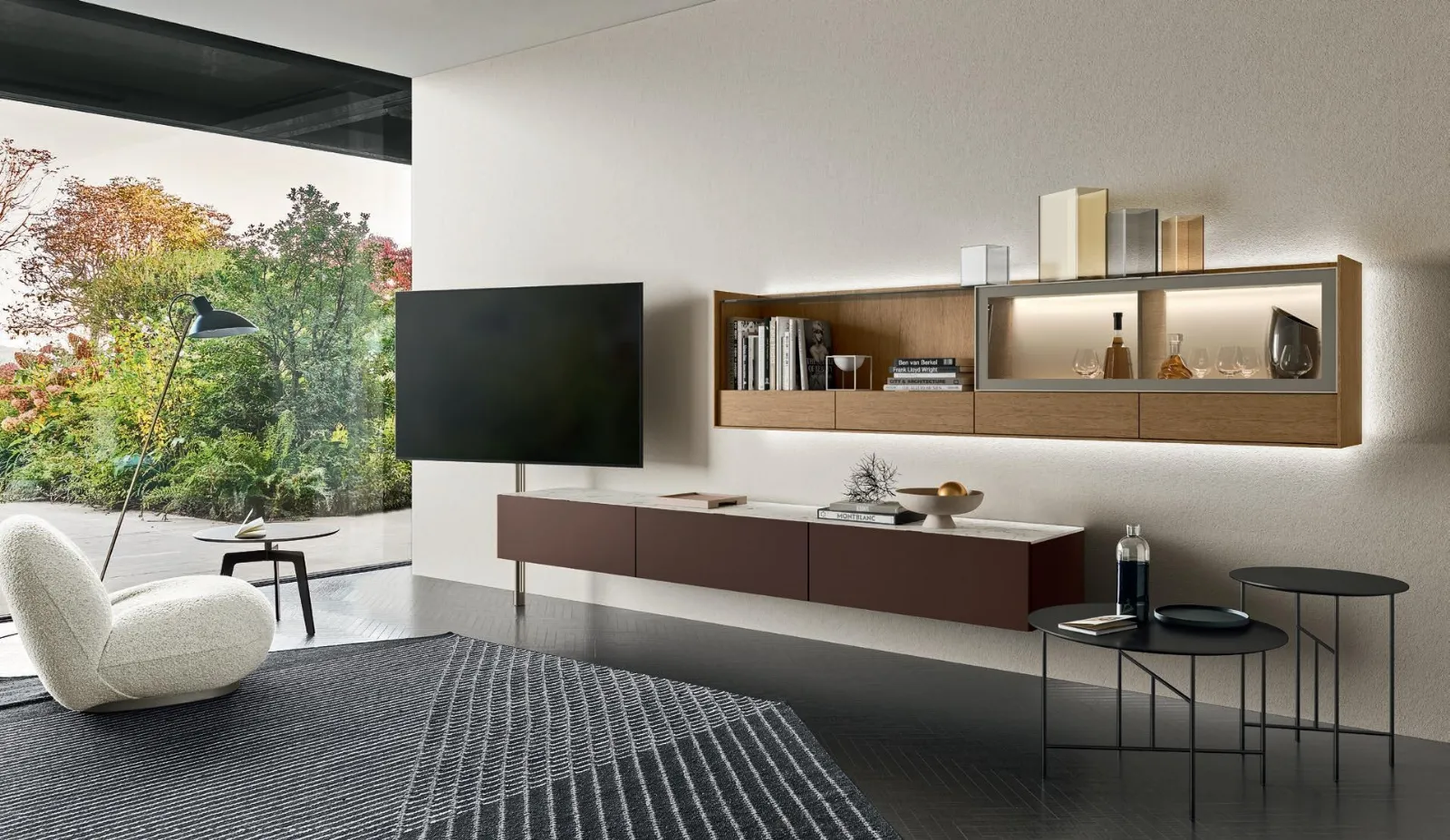 In una ricca serie di Mobili Porta Tv moderni prodotti da Sangiacomo, prende una certa rilevanza il modello in laccato opaco mostrato in foto, mix di funzionalità e stile.