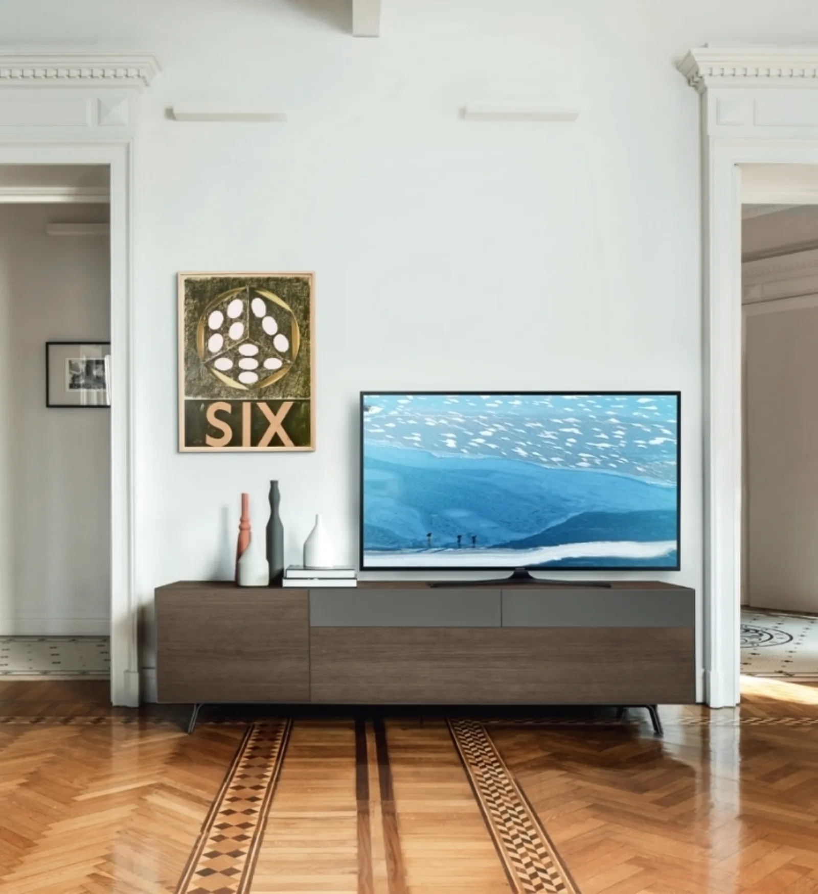 Clicca e scopri il modello Domino Mono 8M sx Sangiacomo: questo mobile per la televisione in legno è tra le più esclusive soluzioni per il living.