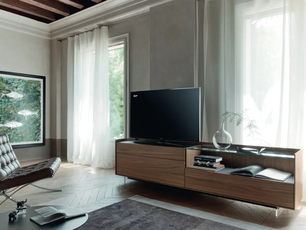 Se vuoi progettare soggiorni moderni, entra e scopri il mobile porta tv Cabaret 56B sx del marchio Sangiacomo, fatto in legno
