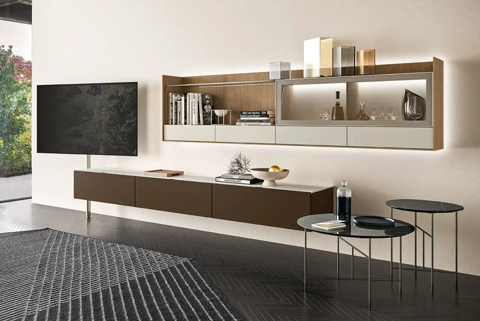 Mobile porta tv per la zona giorno Sangiacomo in laccato opaco: clicca e ottieni informazioni sul modello Tv Video Laccato, perfetto per spazi moderni.