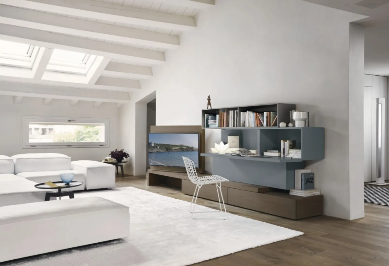 Clicca e scopri il modello Vision Sangiacomo: questo mobile per la televisione in laccato opaco è tra le più originali soluzioni per il soggiorno.