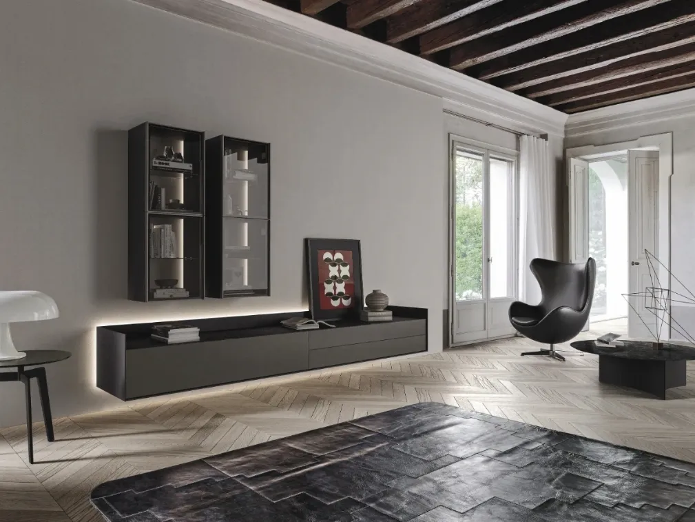 Che tu desideri riporci oggetti d'uso quotidiano o decorativo, uno dei nostri prodotti moderni di grande valore estetico si dimostrerà la scelta ideale per te. Le doti contenitive di questi mobili moderni di Sangiacomo, come quello nella fotografia, ti assicureranno di avere sempre disponibile lo spazio di cui hai necessità. Avere sempre a disposizione una superficie di appoggio multifunzionale nel living, per riporci oggettistica varia e ottenere il meglio dallo spazio disponibile è veramente fondamentale. In showroom potrai visionare in prima persona le più originali composizioni arredative con Pensili in laccato opaco della firma per le pareti della tua casa. Ricorda che il soggiorno è l’area della tua casa dove molto spesso accoglierai amici e parenti: lo spazio deve essere agevole e bello da vedere.