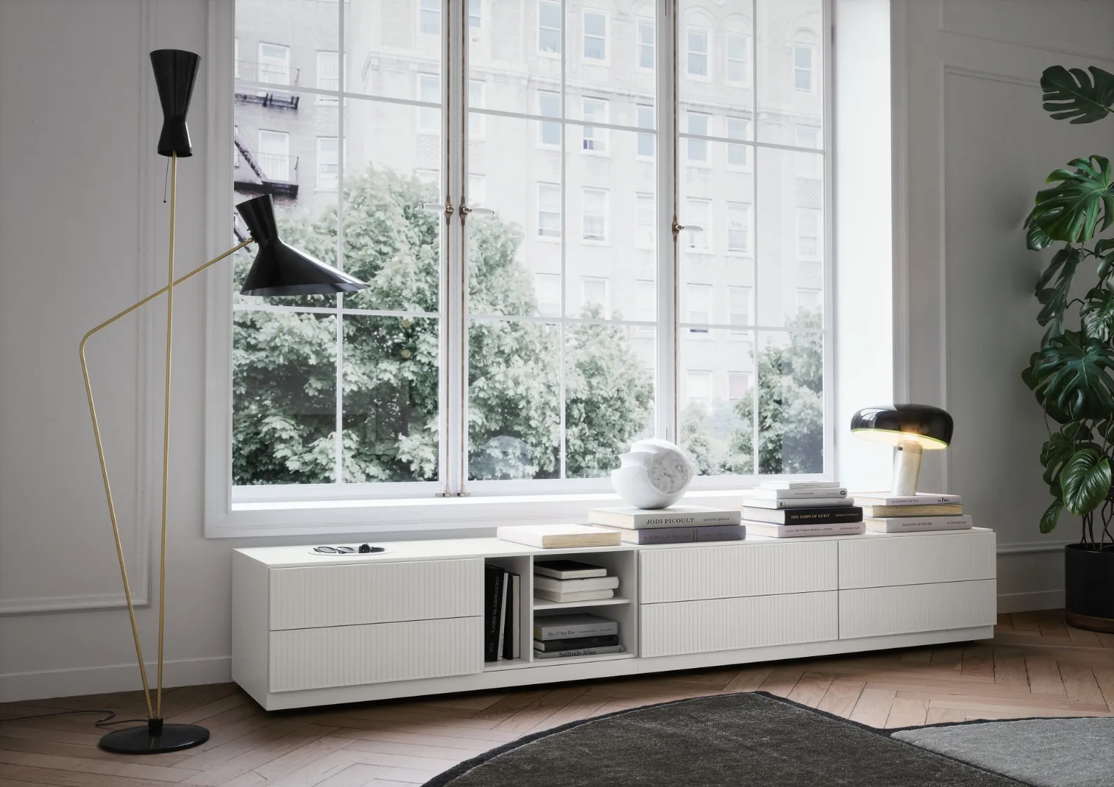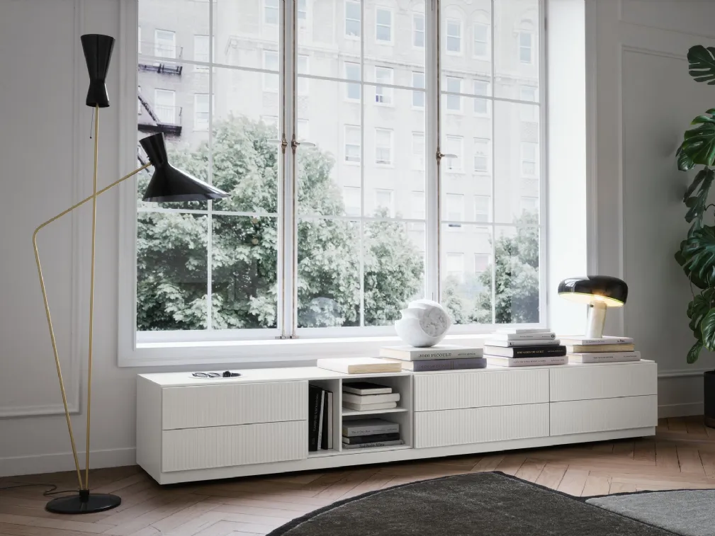 Vuoi ammobiliare spazi moderni? Clicca per scoprire il mobile soggiorno Easy System in laccato opaco del brand Novamobili!
