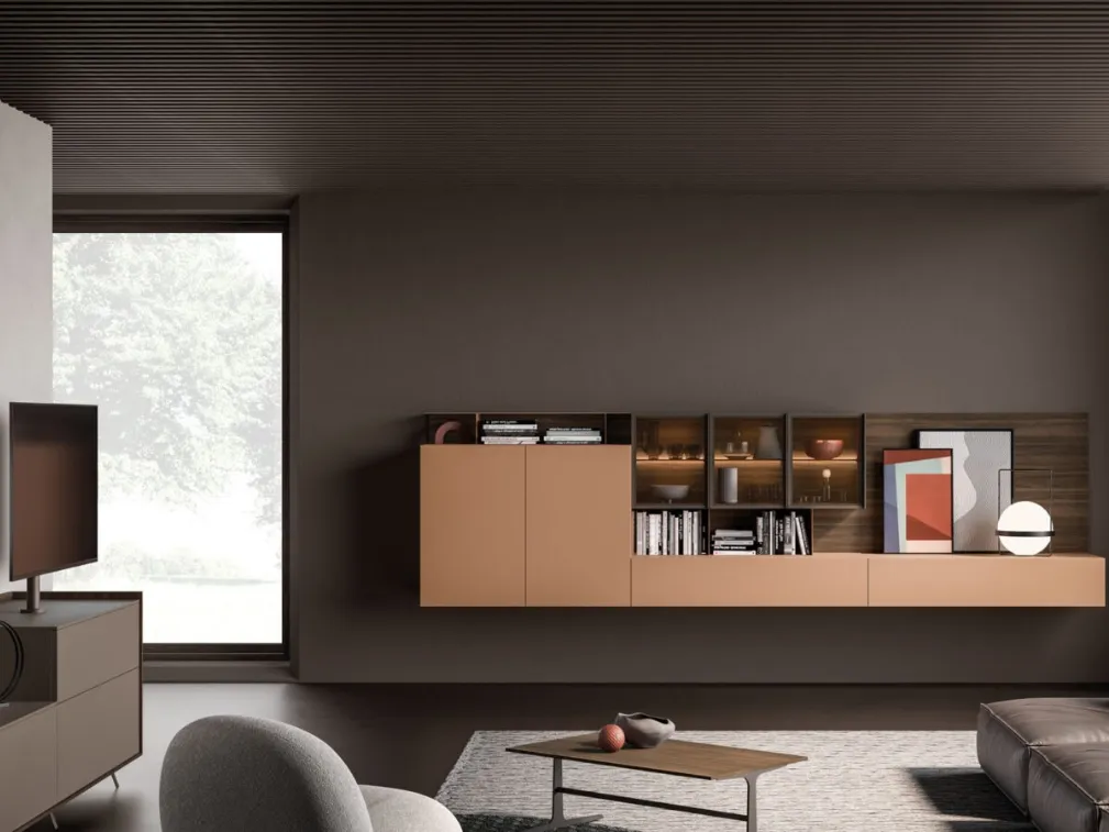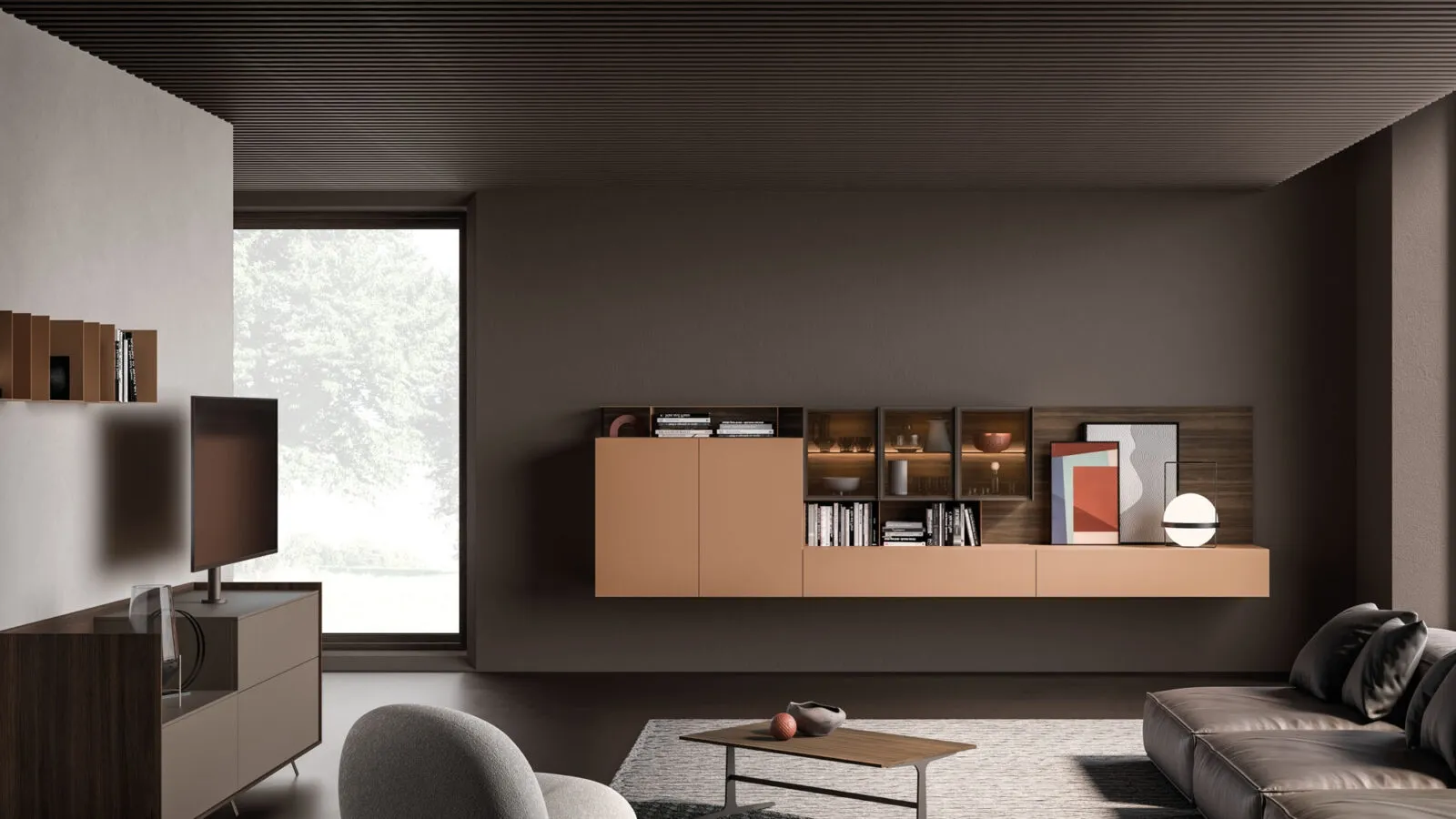 Clicca e scopri di più sul pensile Modulo Day 09 Orme in laccato opaco: arreda un living pratico e operativo.
