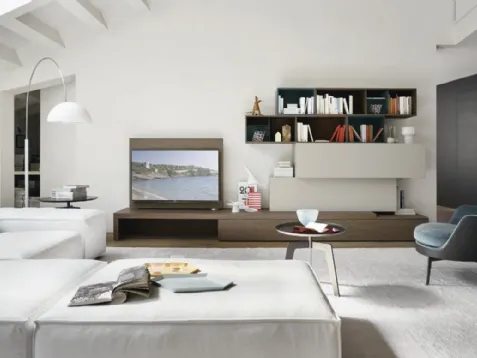 Vuoi ammobiliare un soggiorno pratico e dinamico? Ecco a te la parete attrezzata Base Cabaret 5A Sangiacomo dalle forme decise moderne.