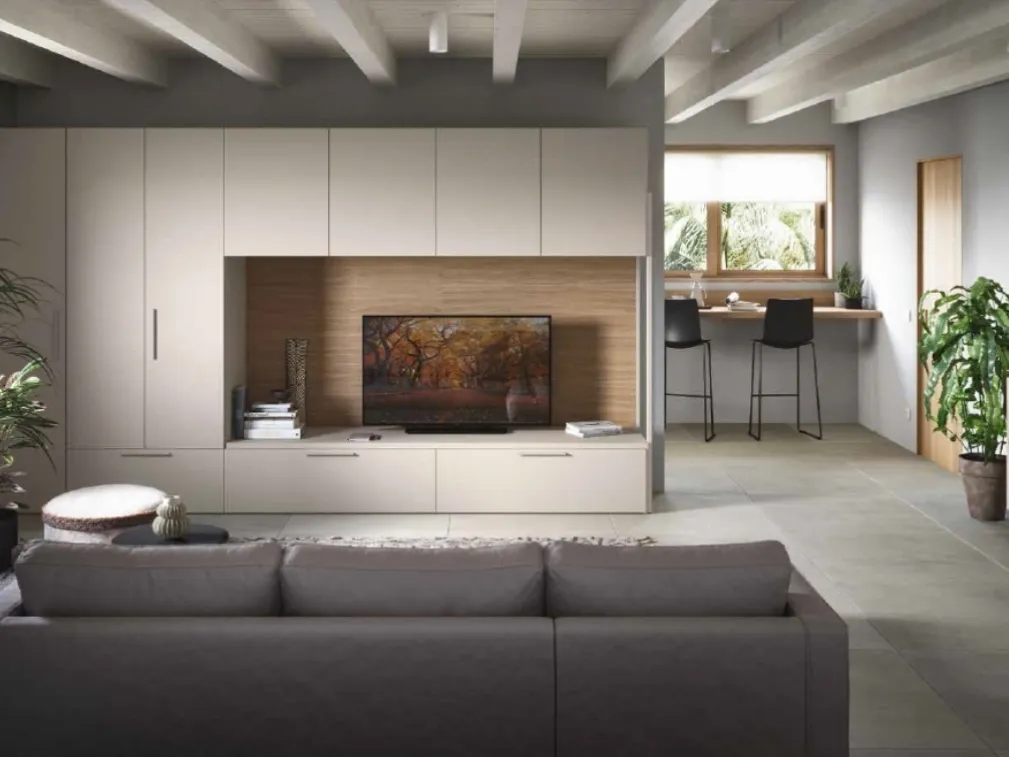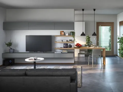 Se vuoi ultimare un soggiorno operativo e pratico dalle linee moderne, ti presentiamo la parete attrezzata Parete Attrezzata 04A Cinquanta3.