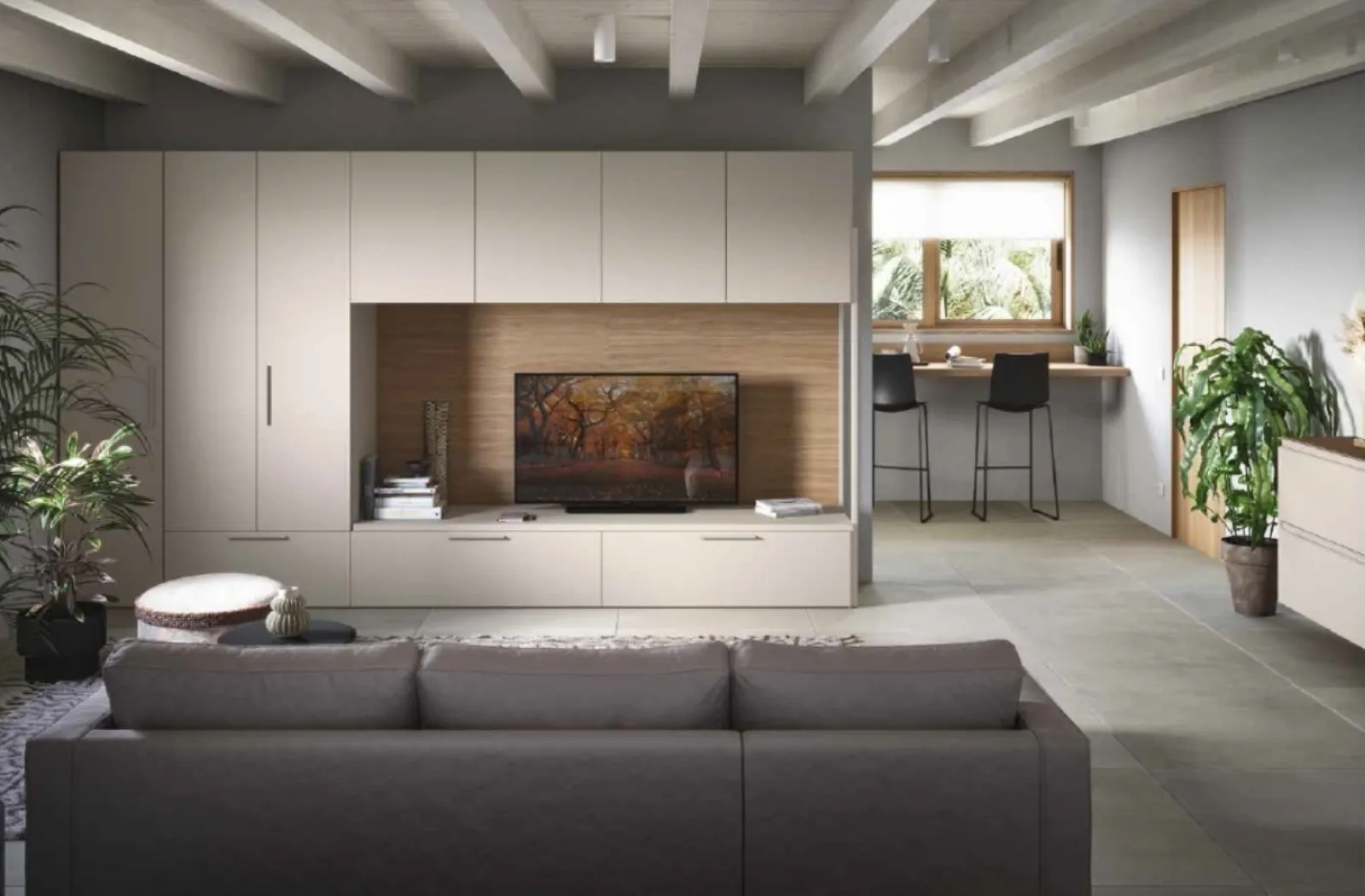 Le Pareti Attrezzate moderne permettono di creare diverse atmosfere nel living, liberando spazio e ottimizzando ogni angolo. La Parete Attrezzata 04A in melaminico Cinquanta3 diventa presenza caratterizzante in stanze di ogni genere grazie ai suoi elementi modulari e alla possibilità di selezionare texture, materiali, cromie, conformazioni e molto altro. Scopri la nostra linea di arredi per il living della firma Cinquanta3 e potrai completare la tua casa con un design unico e le doti contenitive di cui hai necessità. Siamo rivenditori di Arredamento Casa in melaminico dei migliori produttori: contattaci e ottieni informazioni! Studiando le più attuali e personali problematiche abitative, selezionamo solo le più belle e interessanti soluzioni d’arredo sul mercato, definite da grandi doti di personalizzazione su misura.