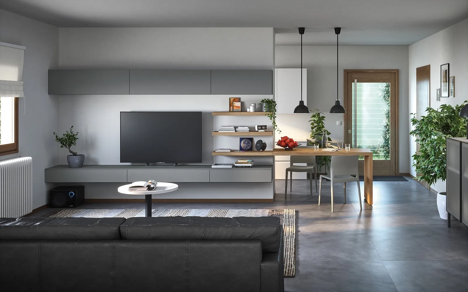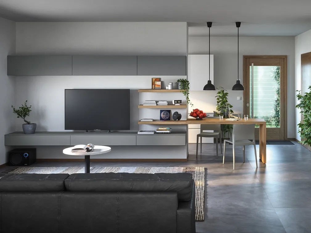 Le Pareti Attrezzate moderne danno la possibilità di creare varie atmosfere nel living, liberando spazio e valorizzando ogni angolo. La Parete Attrezzata 04E in melaminico di Cinquanta3 diventa presenza caratterizzante in stanze di ogni genere grazie ai suoi elementi modulari e alla possibilità di scegliere finiture, materiali, tonalità, forme e tanto altro. Scopri la nostra linea di mobili per il living del brand Cinquanta3 e potrai ultimare i tuoi interni con un design unico e le doti contenitive di cui hai bisogno. Siamo rivenditori di Arredamento Casa in melaminico dei migliori produttori: contattaci e ottieni informazioni! Studiando le più attuali e personali esigenze abitative, selezionamo solo le più originali e interessanti soluzioni d’arredo in commercio, definite da grandi doti di progettualità su misura.